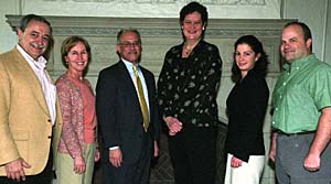 The Graduate Student Senate presented its Sixth Annual Faculty Mentor Awards on April 6 in the Women’s Building to seven deserving individuals. Honored were (from left) Sandor Kovacs, Ph.D., M.D., associate professor of medicine and of physiology; Karen O’Malley, Ph.D., professor of anatomy and neurobiology and director of the neuroscience program in the Division of Biological and Biomedical Sciences; Luis Zayas, Ph.D., the Shanti K. Khinduka Distinguished Professor in the George Warren Brown School of Social Work and professor of psychiatry in the School of Medicine; Elizabeth Childs, Ph.D., associate professor of art history in Arts & Sciences; Jennifer Smith, Ph.D., assistant professor of earth and planetary sciences in Arts & Sciences; and Jonathan Chase, Ph.D., associate professor of biology in Arts & Sciences and assistant director of the Tyson Research Center. Also honored but not pictured was anthropology’s Erik Trinkaus, Ph.D., the Mary Tileston Hemenway Professor in Arts & Sciences.