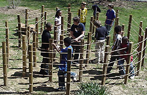 • Labyrinths by Lauren O’Neill is a wood and rope labyrinth constructed with help from a sixth-grade class at Delmar-Harvard Elementary School. This is an exercise in the rite of passage for these students, who are about to progress on to middle school, to give them a sense of self-calming and empowerment.