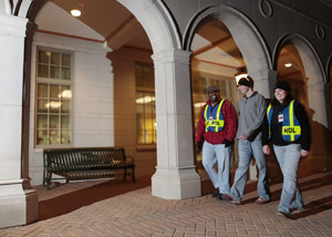 The shuttle leaves from both the Mallinckrodt Center and the Brooking Drive steps and takes passengers directly to the front doors of their buildings. Shuttle drivers then will wait and watch to make sure passengers get into their buildings safely.
