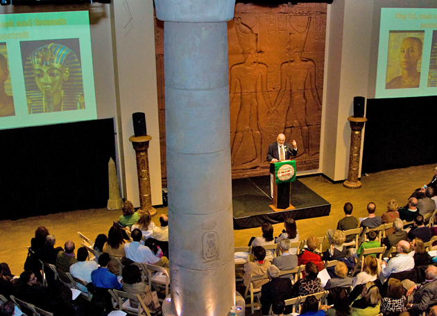 On Oct. 17, 2010, alumni and friends explored ancient Egypt at the Discovery Times Square Exposition in New York with the help of the university’s premier ancient Egyptian scholar. Sarantis Symeonoglou, professor of art history and archaeology in Arts & Sciences, gave a presentation about the artifacts and life of the pharaohs. His lecture was followed by a tour of the exhibition, Tutankhamun and the Golden Age of the Pharaohs. The exhibit featured more than 130 artifacts from the tomb of Tutankhamun and other ancient Egyptian sites.