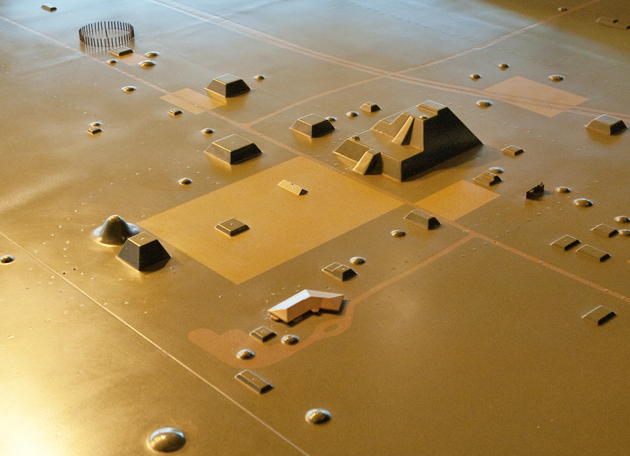 “At one point, the ancient Cahokians placed a large post through the upper surface of Monks Mound,” Schilling says. “The post was more than 40 feet tall with a diameter of 3 feet. Erected at the top of the mound, the post may have been an axis mundi or the center of the Cahokian world.”