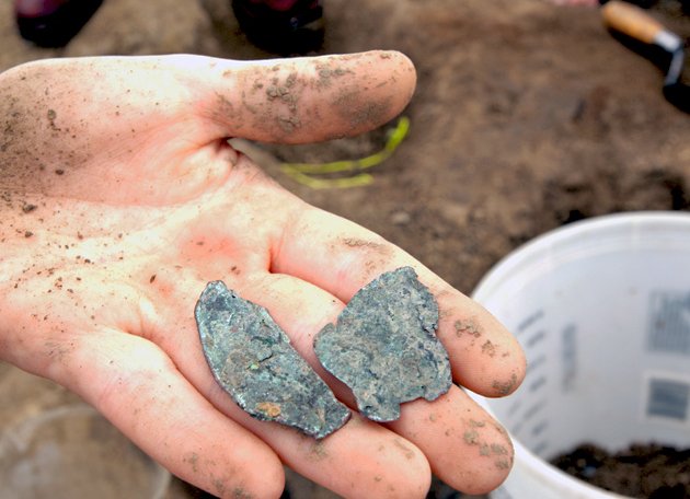 “We’re underneath the mound here,” Kelly says. “The top is off, and the area where we’re standing was excavated back in 1956. We’ve been working here the last several years to re-map the area in a much-more detailed way.”