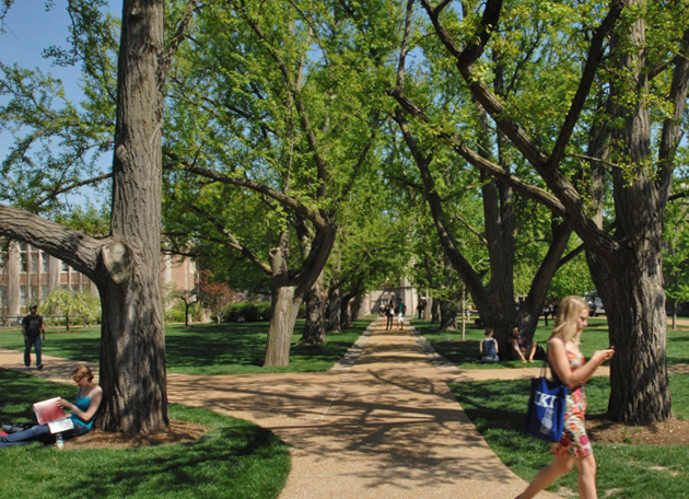 Home to approximately 3,800 trees, the Danforth Campus of Washington University in St. Louis was recently recognized by the Arbor Day Foundation as a Tree Campus USA. Bald Cypress, Valley Forge Elm, Gingko, Swamp White Oak and Tulip Poplar are among the 46 different tree species and 76 varieties on campus.