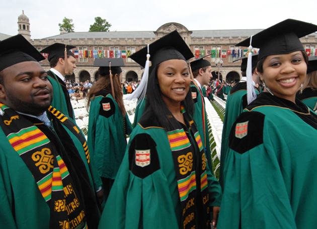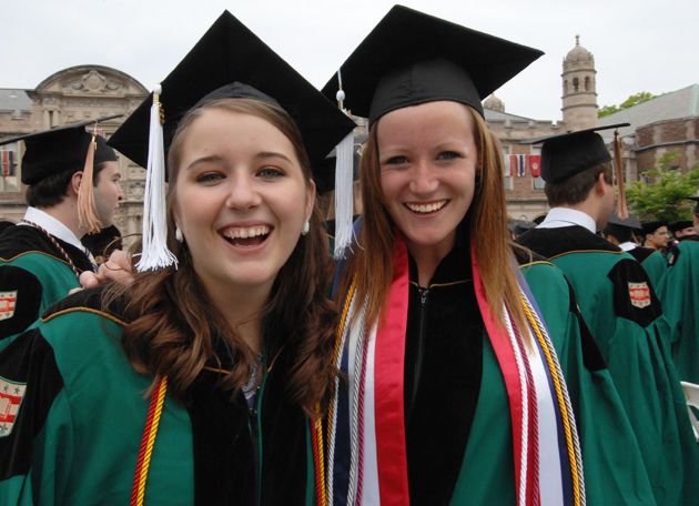On May 20, 2011, Washington University celebrated its 150th Commencement exercises. Fashions may have changed over the years (as seen in photo from the 1908 Commencement), but the excitement of the occasion has never waned. (Courtesy Washington University Archives)