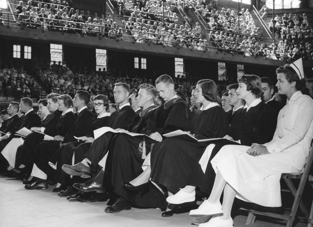 Commencement held in the Field House, 1955 (Courtesy Washington University Archives)