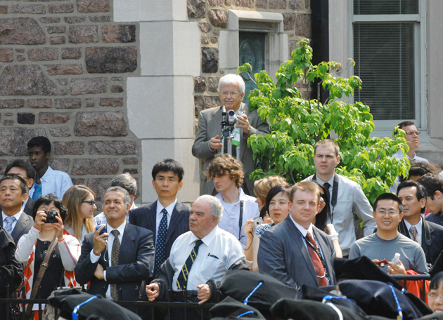 Alumnus James Fowler, AB ’68, MA ’70, MA ’72, has videotaped every Commencement ceremony since he received his third degree from the university in 1972. (Courtesy of Washington University Photographic Services)