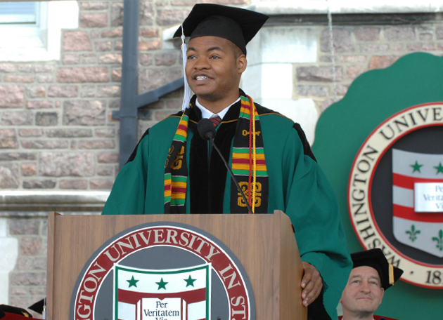 In addition to planning events for “Senior Week,” Senior Class President Alex Kiles delivered the student speech at the 150th Commencement. (Courtesy of Washington University Photographic Services)