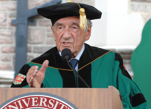 Nobel laureate Elie Wiesel, a Holocaust survivor and human rights activist, delivered the 2011 Commencement address. (Courtesy Washington University Photographic Services)