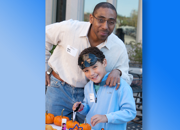 Rene Morency Jr., AB ’91, and his son put their artistic talents to work during the Fall Festival. (Jerry Naunheim Jr.)