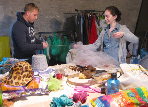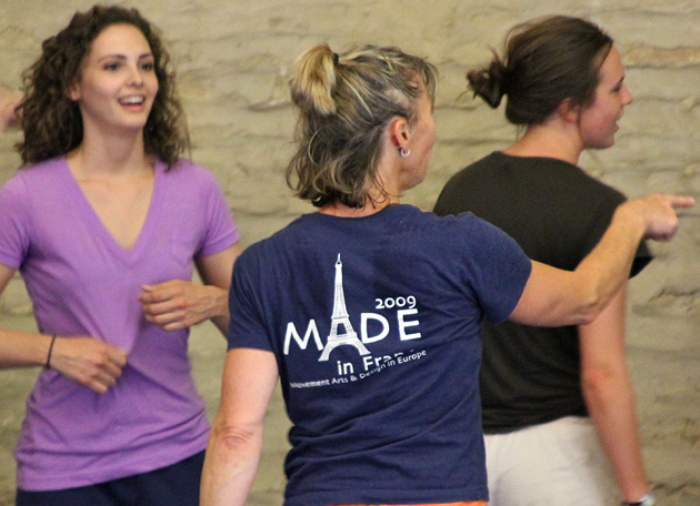 Mornings are devoted to technique class, often led by Dorfman, to warm up students’ bodies for creative work later. After lunch, the group moves into master classes with European artists (designers, choreographers, musicians), along with workshops led by Kruger in costume design. Working in teams, they spend part of each day preparing their final, end-of-program performance.