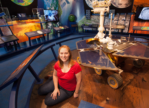 Kirsten Siebach, AB ’11, is a former Pathfinder student who became at 19 the youngest person to join the Phoenix Mars Lander team. As part of her doctoral studies at Caltech, Siebach is working as a Mars Science Laboratory (MSL) mission documentarian and science activity planner. (Rob Brown)