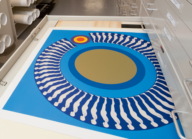 Various iterations of “Falling Man” and other works by Ernest Trova are held at West Campus Library’s Modern Graphic History Library. Pictured is Ernest Trova, Study for Falling Man, 1970; eight-color silkscreen. (Joe Angeles)