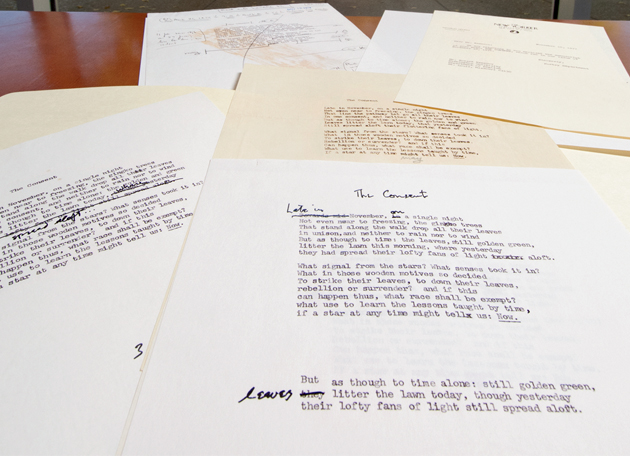 Working drafts of “The Consent,” by the late Pulitzer Prize–winning poet Howard Nemerov, can be found in Olin Library’s Special Collections. (Joe Angeles)