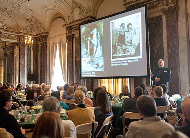 Professor John Klein discussed Picasso’s black-and-white works with an engaged audience of alumni, parents and friends. (Jennifer Weisbord, BFA ’92)