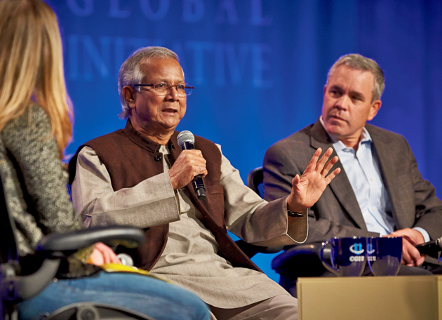 Standing on stage in the darkened Athletic Complex, under a bright spotlight, Clinton challenged the 1,200 transfixed CGI U students to spend their lives thinking of what makes us similar, not different. “If you want to build a future of shared prosperity and shared community,” Clinton said, “you can never forget that the 99½ percent has to count more with you than the half percent.”