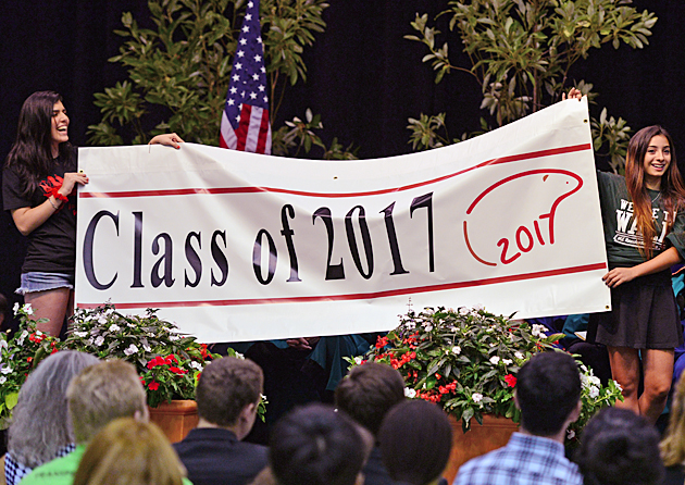 After spending the day moving in and setting up their rooms, freshmen gather together for their first residential-floor meeting, walk to the Field House and then Freshman Convocation. (James Byard)
