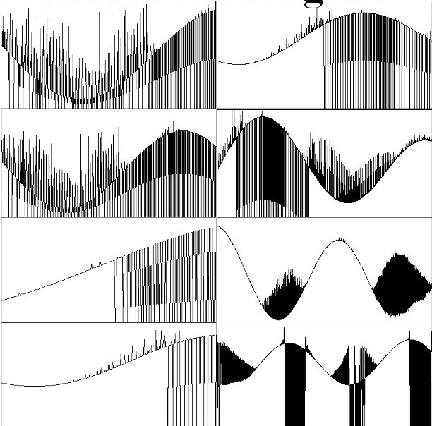 Data from “engineering runs” of an experiment to test the going concept of the geometry of space and time. The purpose is to make adjustments that will remove noise but “after hours of staring at infinite variations of these images late at night, the oscillations and noise become hills and mountains covered in the trees and brush of a pixelated world rolling by as the data scrolls past. “-Adam Archibald