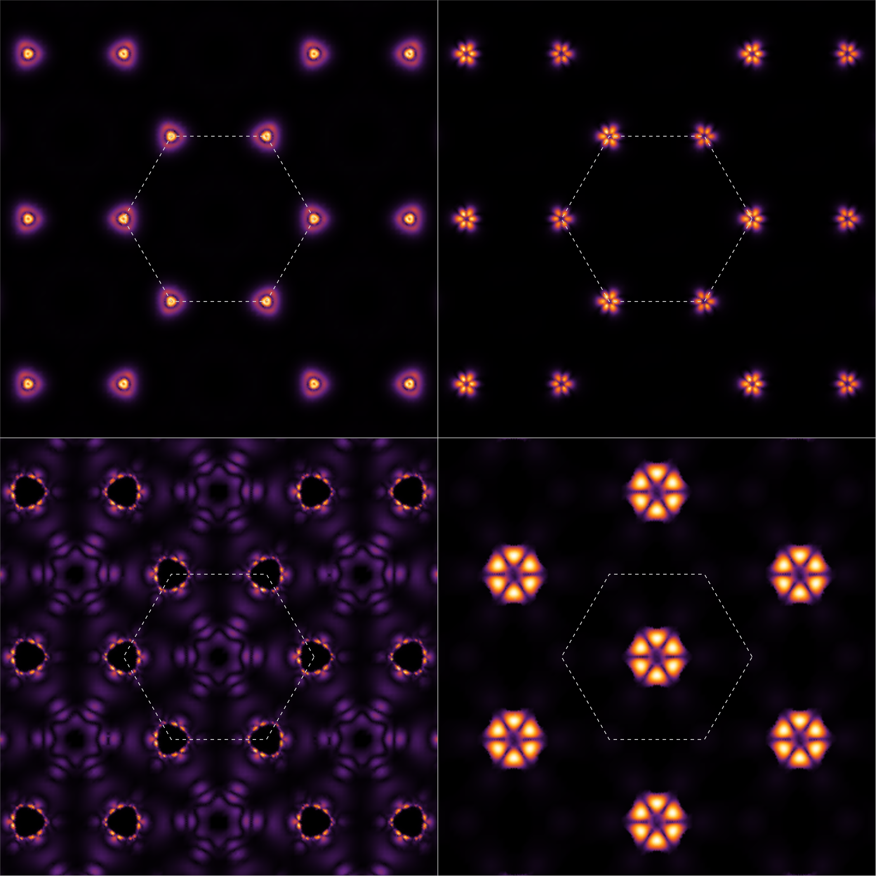 Physics Student Award. A computer simulation of the exicitons (bound electron/hole pairs) in molydenum disulfide. In effect this is an image of the optical properties of the material. –Shiyuan Gao with Vy Tran