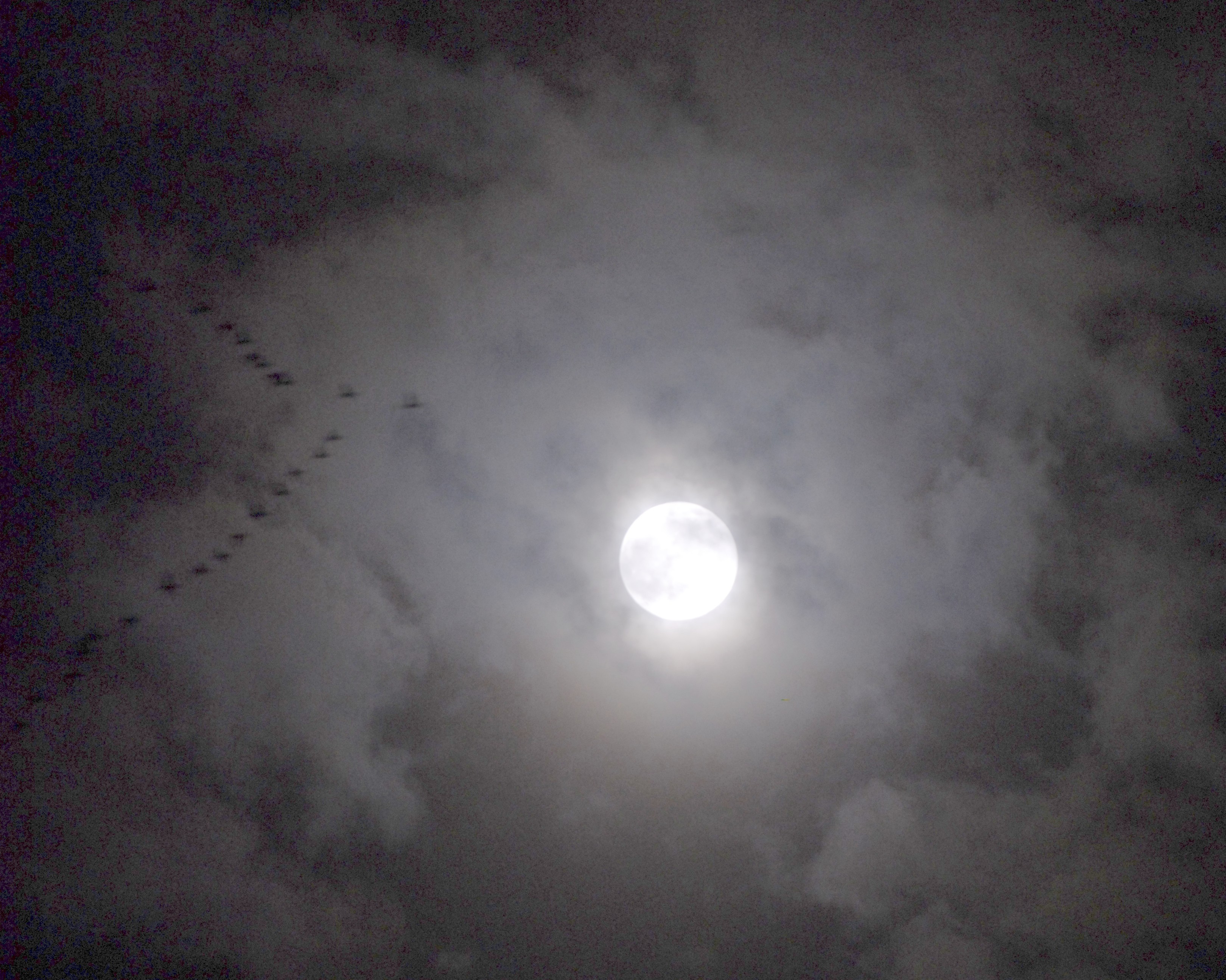 Moon and migrating geese. “I didn’t realize the geese were in the frame when I took the photo.”-Randy Korotev