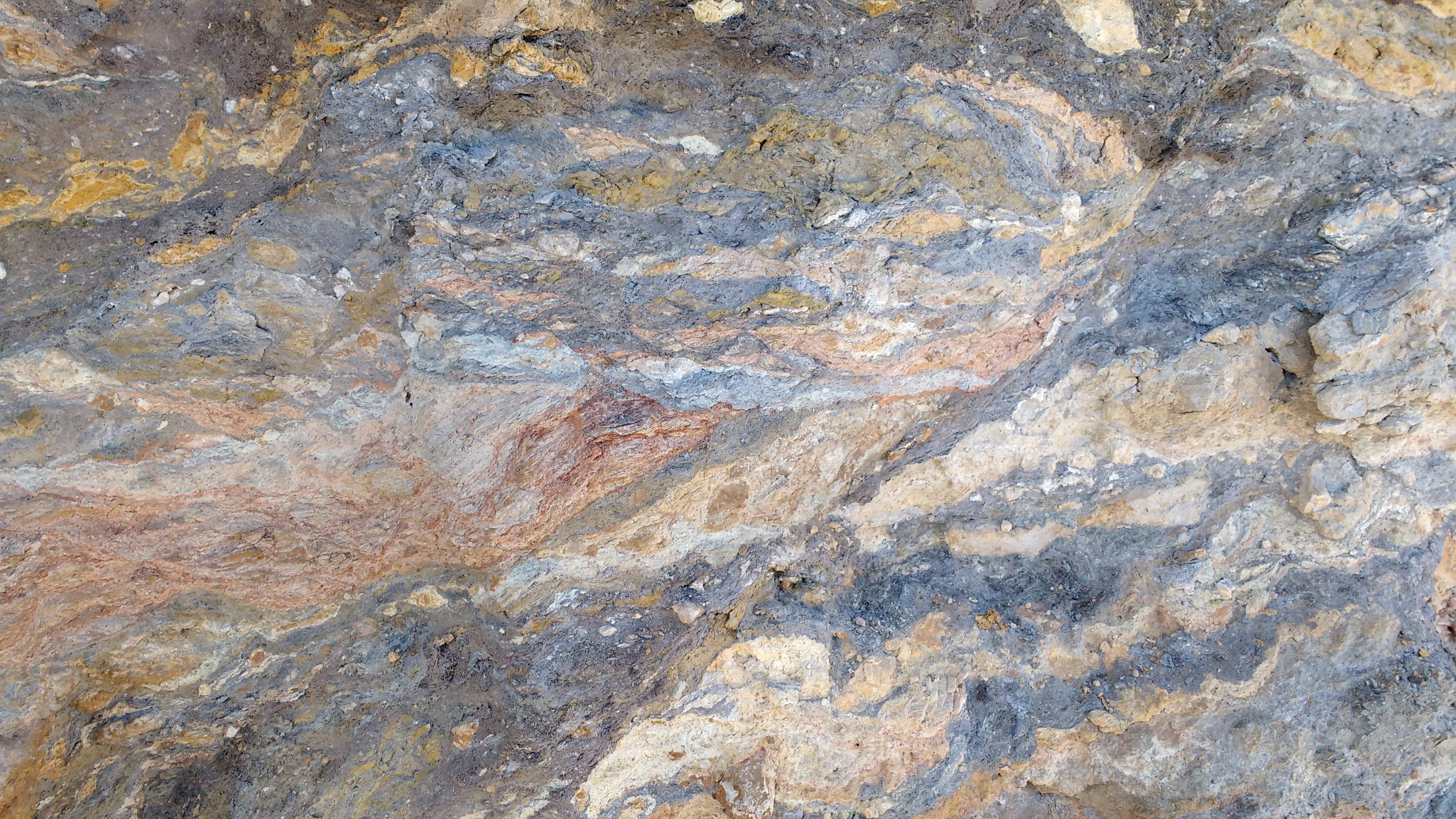 Fault gouge, unconsolidated rock with a small grain size, formed by the grinding and milling of rock by the Palomares fault near Mojacar in Spain.–Phil Skemer