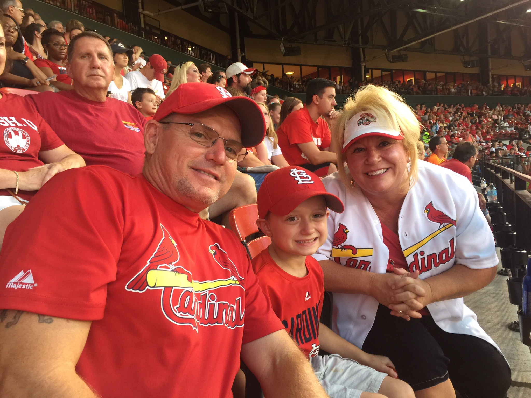 Linda Hack, director of benefits in Human Resources, enjoys the ball game with her family at Washington University Employee Night at the Ballpark Aug. 8, 2016. (Photo: Amanda Pope)