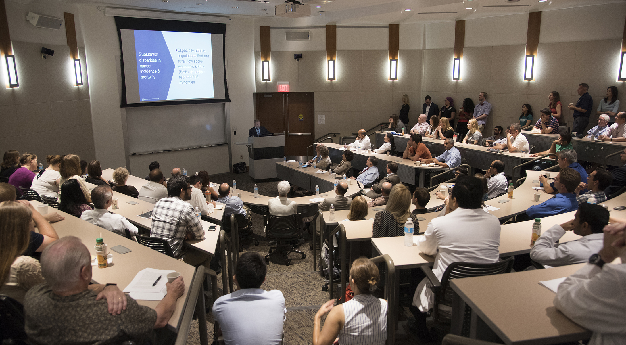Douglas R. Lowy, MD, acting director of the National Cancer Institute, told Washington University School of Medicine faculty and staff that the NCI is doubling its efforts to address disparities in cancer research and care. (Photo: Robert Boston/School of Medicine)