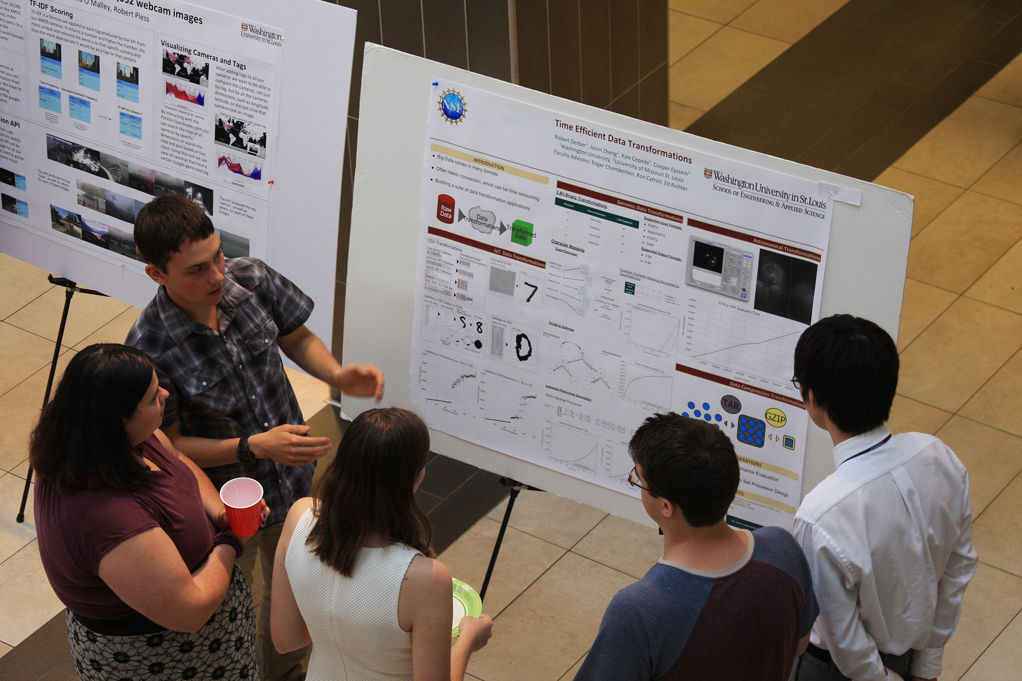 The Department of Computer Science and Engineering in the School of Engineering & Applied Science hosted summer students as part of its Research Experiences for Undergraduates (REU) program. On July 28, participants took part in a research symposium in Lopata Gallery to present posters and showcase their work.