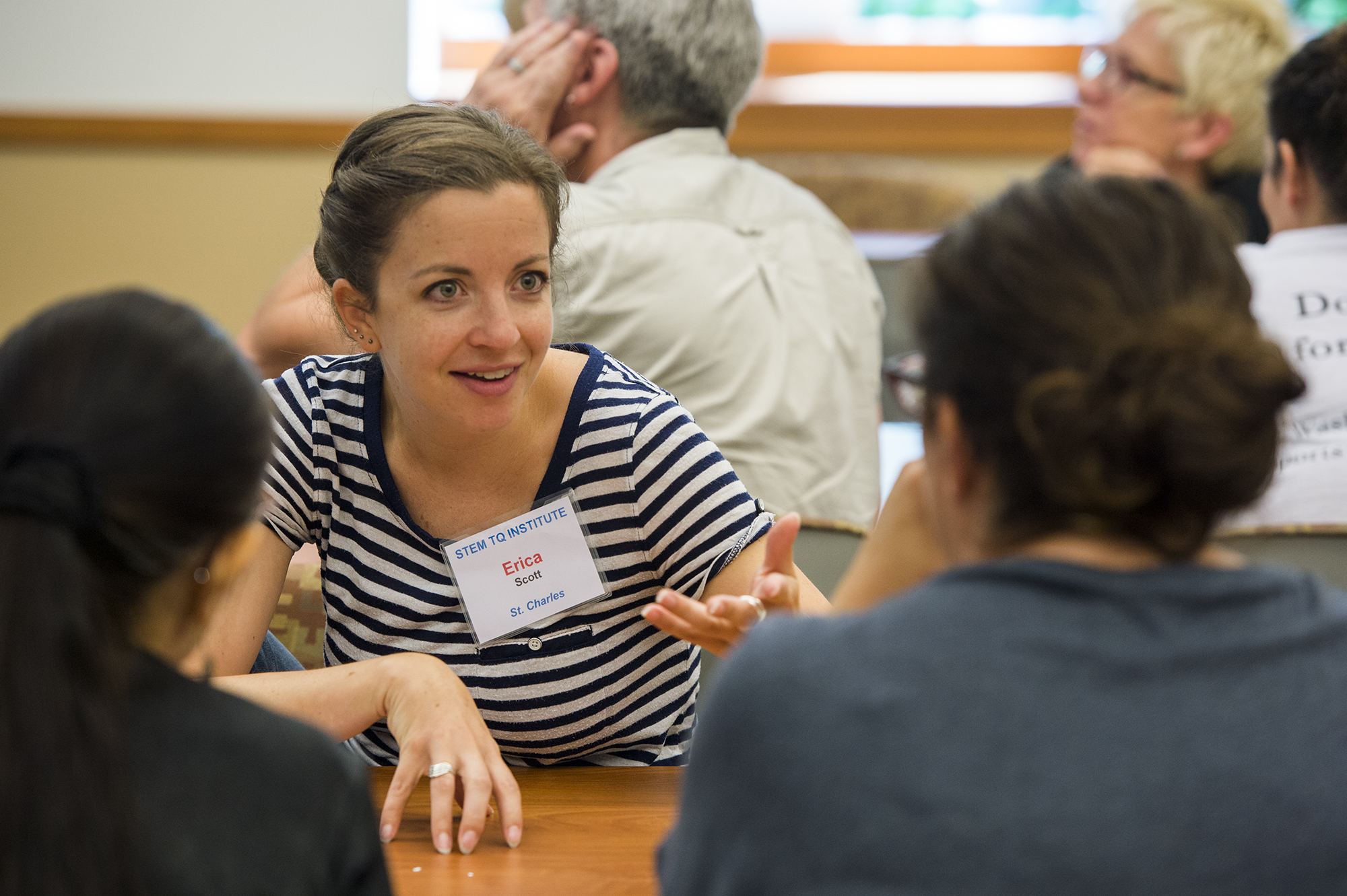 Erica Scott, a third-grade teacher in the St. Charles School District, participates in the Teacher Quality Initiative Summer Program July 21, 2016, in Seigle Hall. Hosted by Washington University’s Institute for School Partnership, the program helps elementary teachers learn to integrate STEM learning into their lessons. (Photo: Joe Angeles/Washington University)
