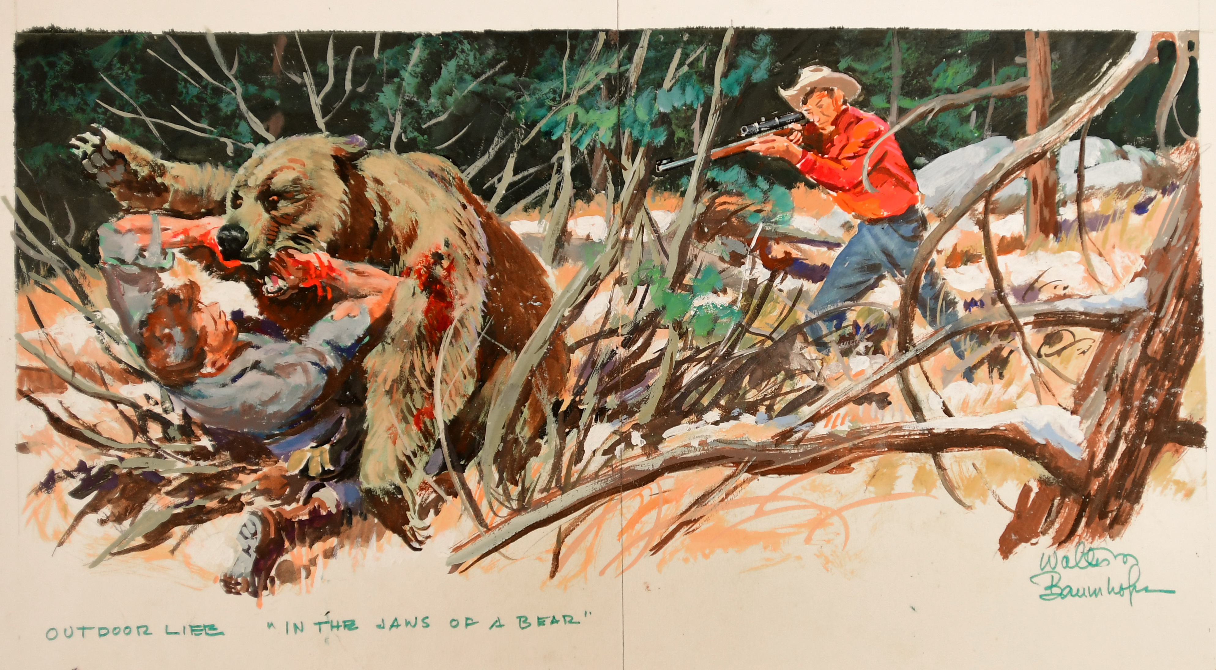 The MGHL contains dozens of collections representing some of the most significant figures in graphic media, past and present. A particular focus of the MGHL is 20th-century illustration, including the archives of famous illustrators such as Al Parker, Robert Weaver, Robert Andrew Parker and others. One interesting thing about the Baumhofer collection is how it fits into our larger collection in that Baumhofer was a contemporary of Parker’s, who was a Washington University alum and who was the first illustrator’s work we acquired. Al Parker was known as the “rock star of illustration,” and he was prolific with women’s magazines and the more feminine side of illustration. And although Baumhofer illustrated for some ladies’ magazines, he was known primarily for adventure, rugged outdoor and men’s stuff. So it’s nice to have that contrast. In addition, the rich array of materials represented in the Baumhofer Collection will give us further insight into the professional and personal lives of these well-known magazine illustrators during a time when illustration was a significant and essential component of publishing.