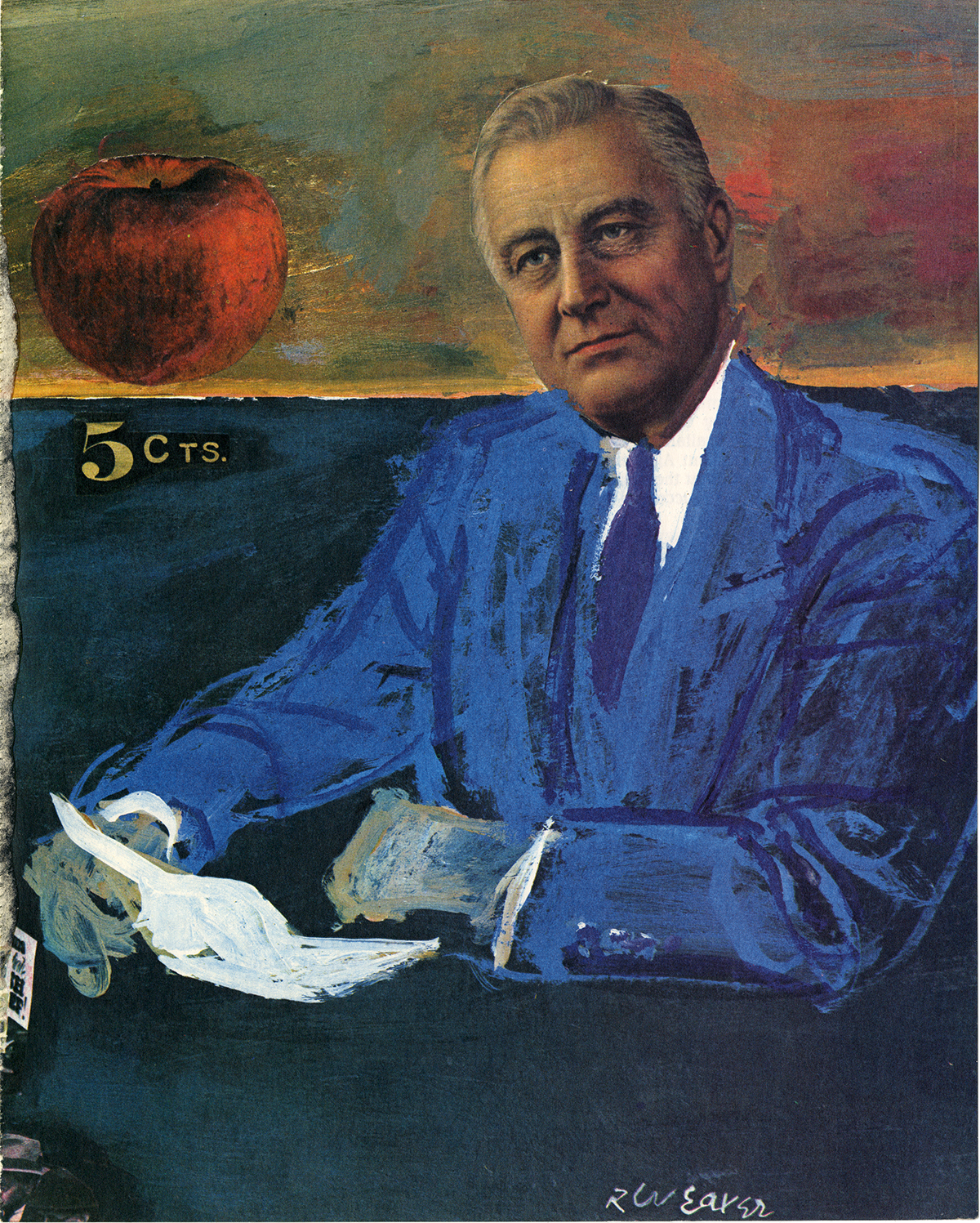 Among the collection in the Modern Graphic History Library is this illustration of Franklin Delano Roosevelt by Robert Weaver. Revered as the leader of the “Expressionist School” of American illustration, Weaver used avant garde elements, photography and collage to create socially aware illustrations for Esquire, Fortune, New York Magazine, Look, Playboy and Sports Illustrated.