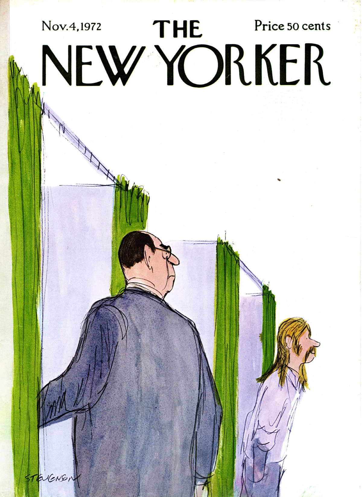 In the glory days of reportage drawing, top illustrators like Weaver were hired by news outlets to chronicle the big events of the day. Skye Lacerte, Modern Graphic History Library curator, ranks Weaver among the best. “There was a shift to photography in the 1950s and ’60s, but art directors also were being pressured to come up with new and interesting ways of presenting images,” Lacerte said. “Weaver often accomplished this by creating really compelling juxtapositions — two images that complete a narrative. A lot of time I will get his work and I won’t know which way is up until I see his signature.”