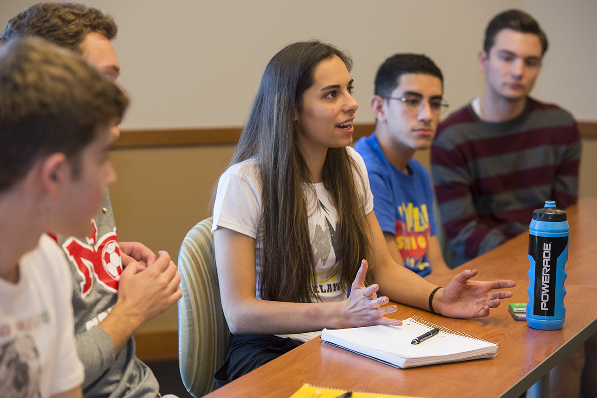 Students participate during the class “The Presidency 101: From Washington to Obama” in Seigle Hall, taught by Peter Kastor, chair of history in Arts & Sciences. (Photo: Joe Angeles/Washington University)