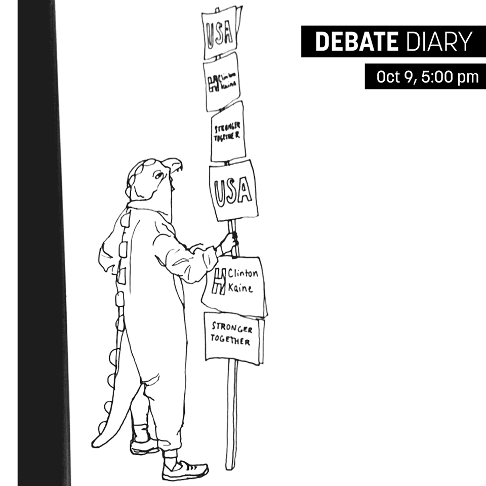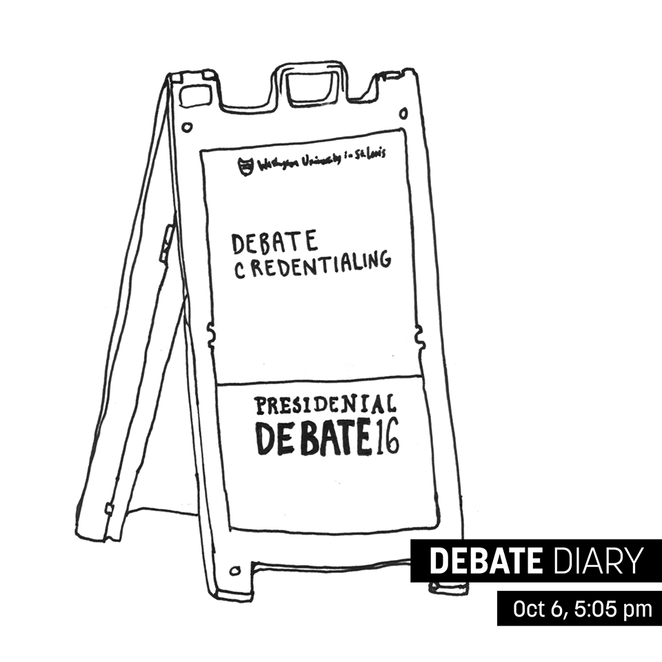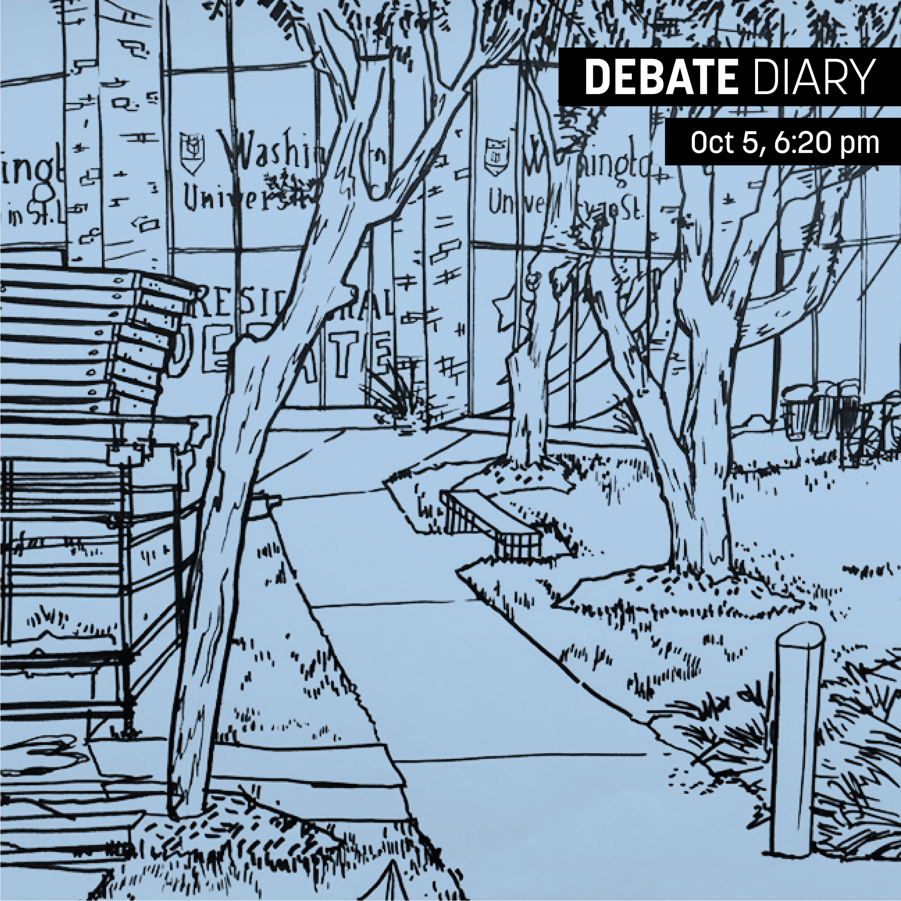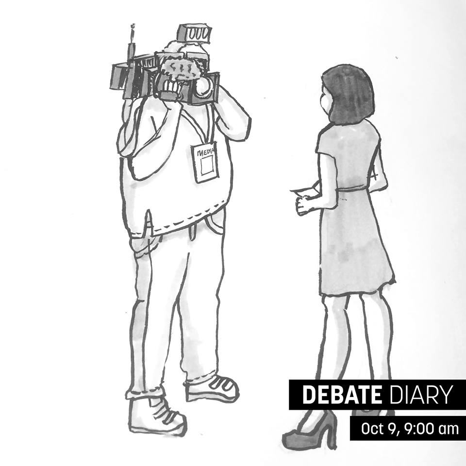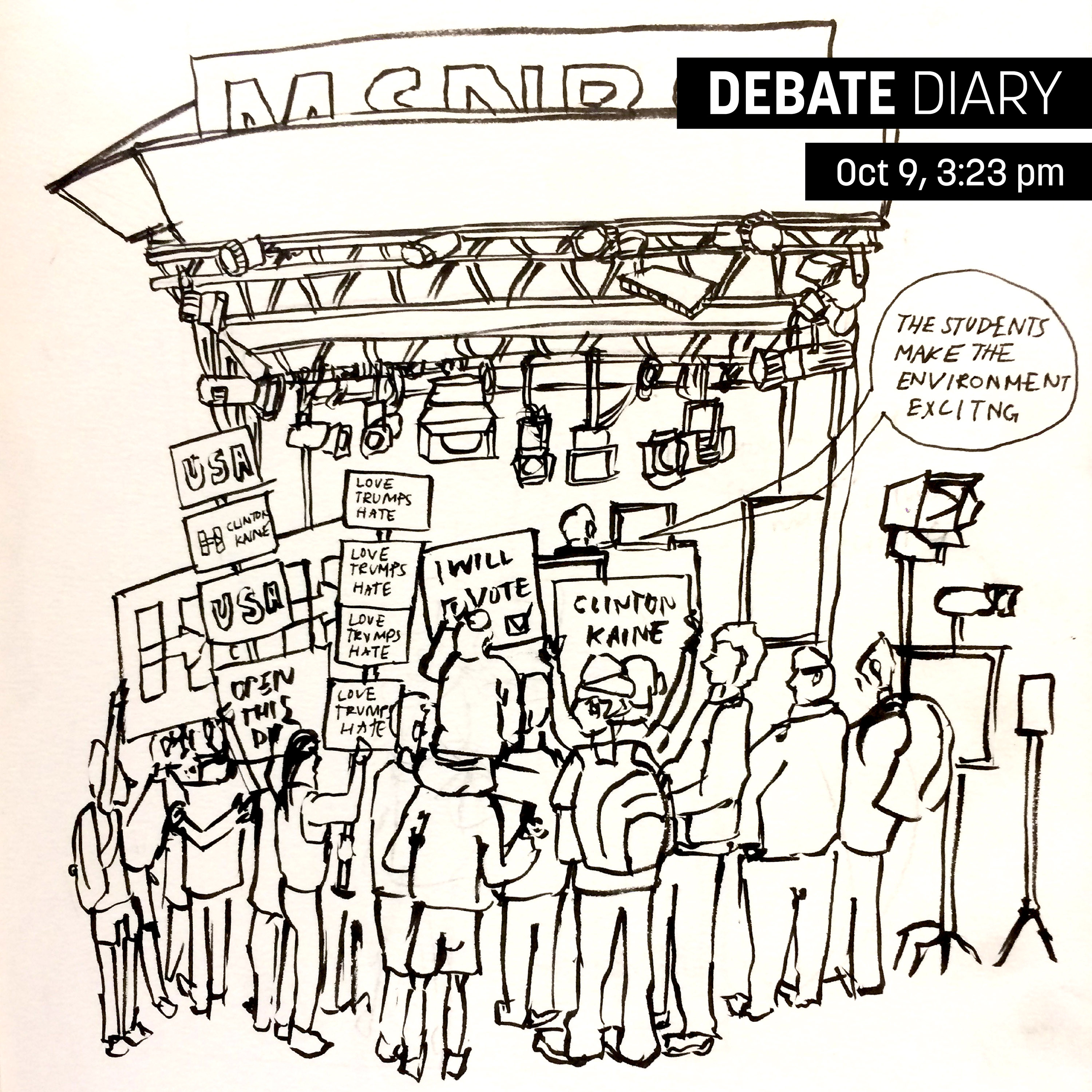 “What we found interesting were the quiet moments that media might overlook,” said Susan Lee, a senior communication design major and one of the group’s primary illustrators. “We tried to record the real people who helped to make the debate happen.”