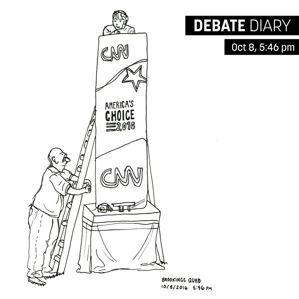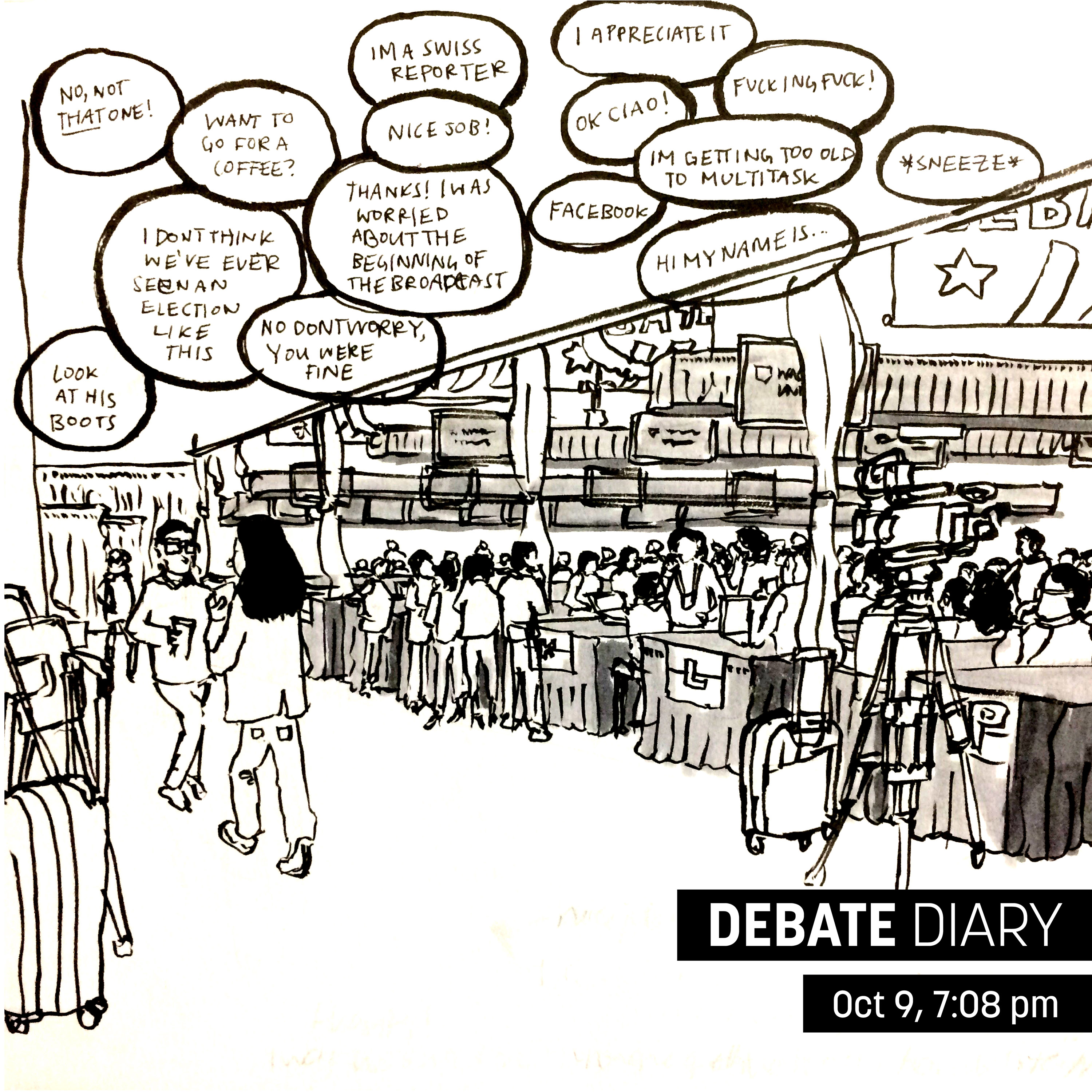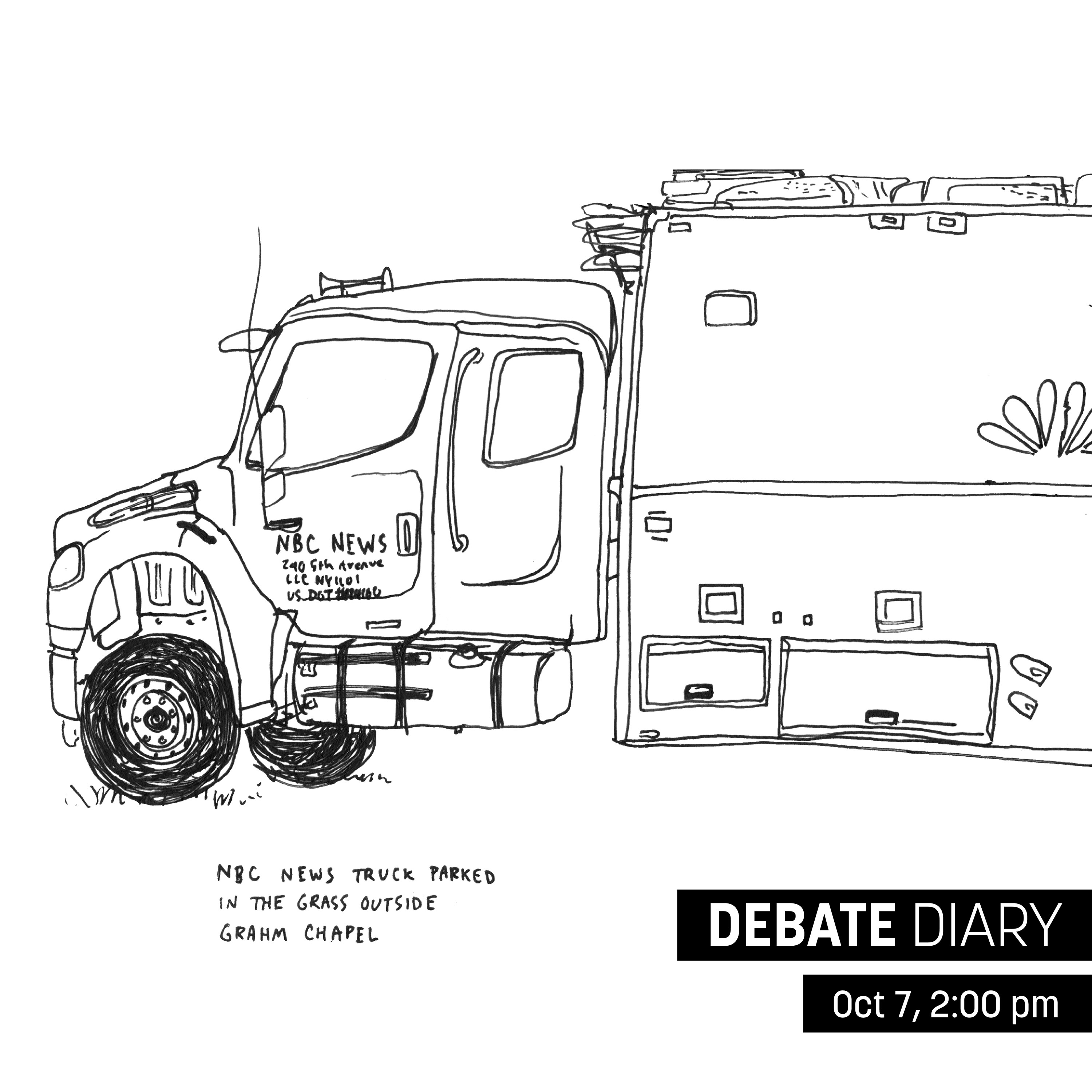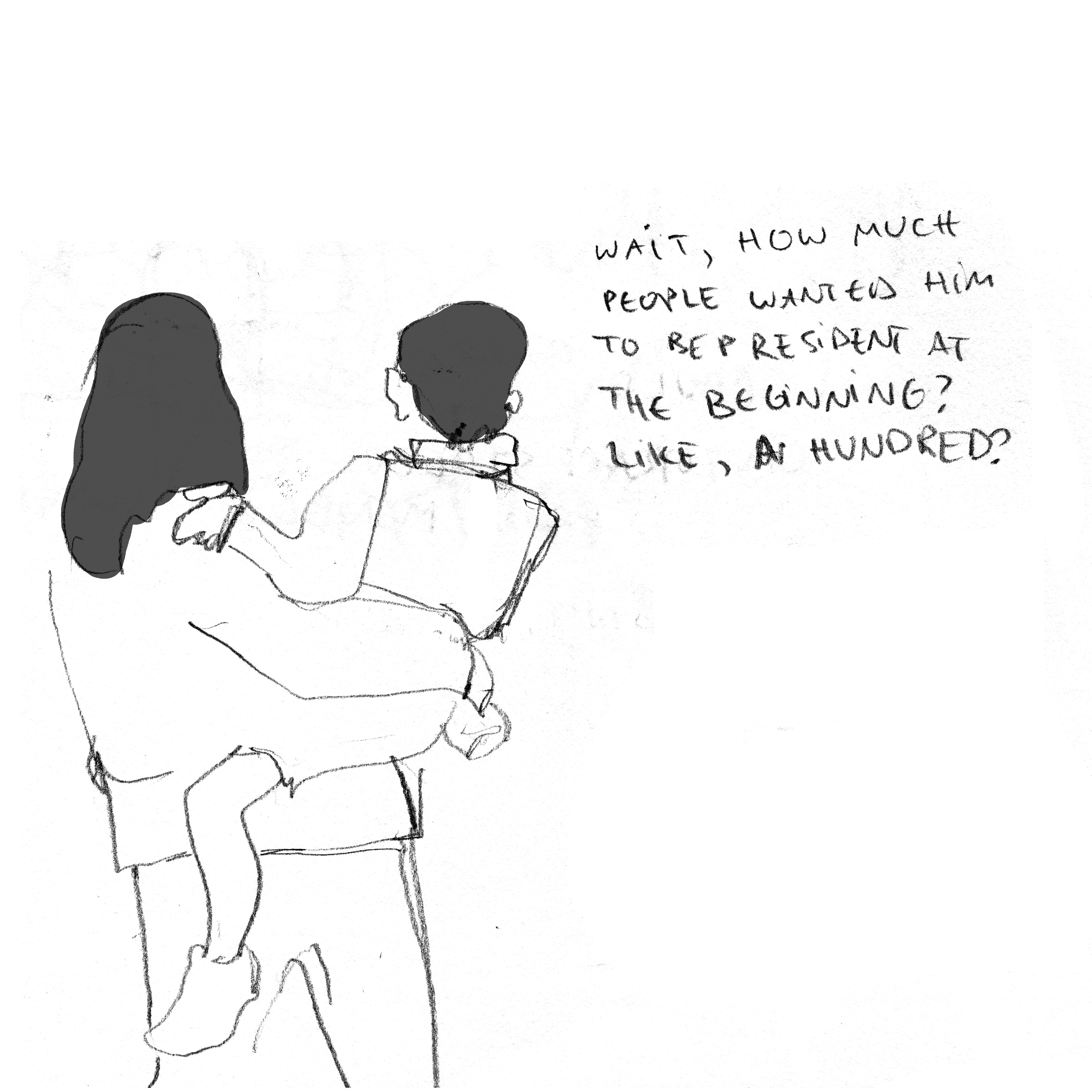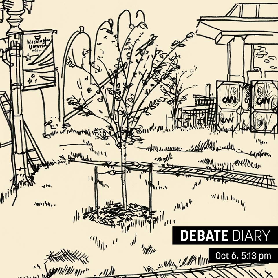 “What we found interesting were the quiet moments that media might overlook,” said Susan Lee, a senior communication design major and one of the group’s primary illustrators. “We tried to record the real people who helped to make the debate happen.”