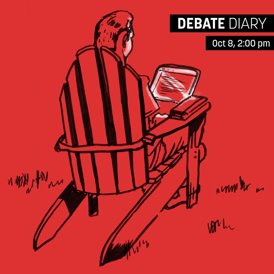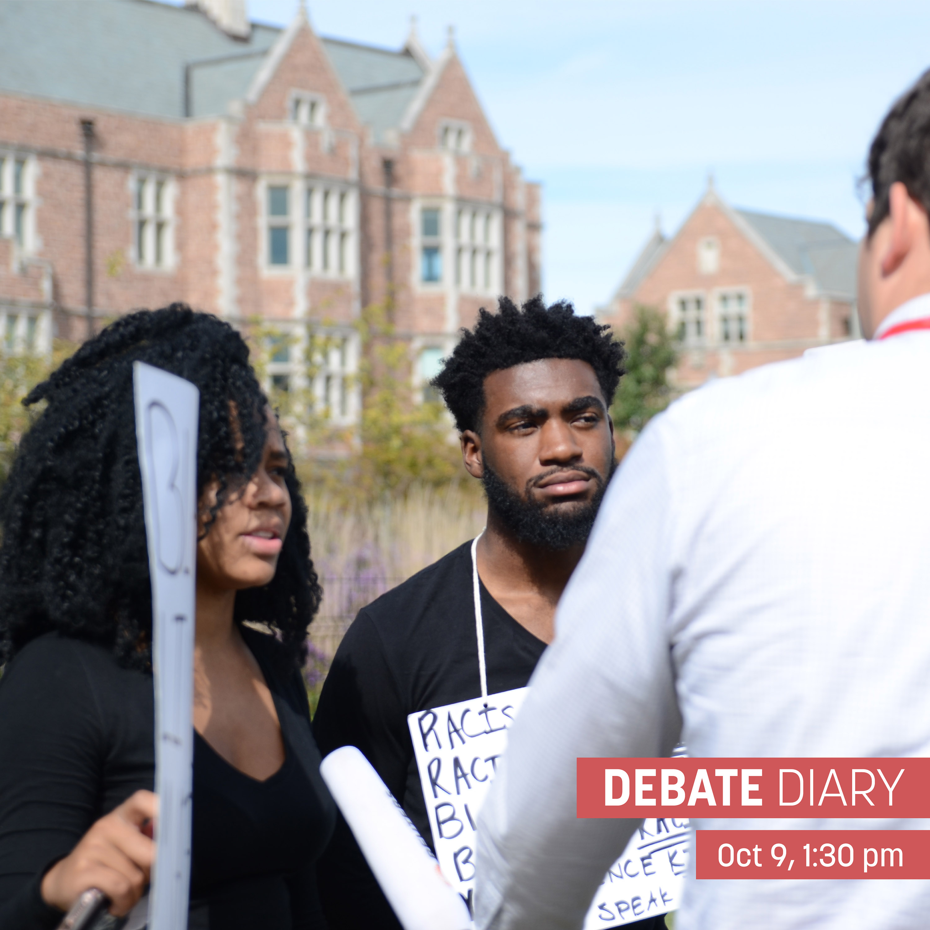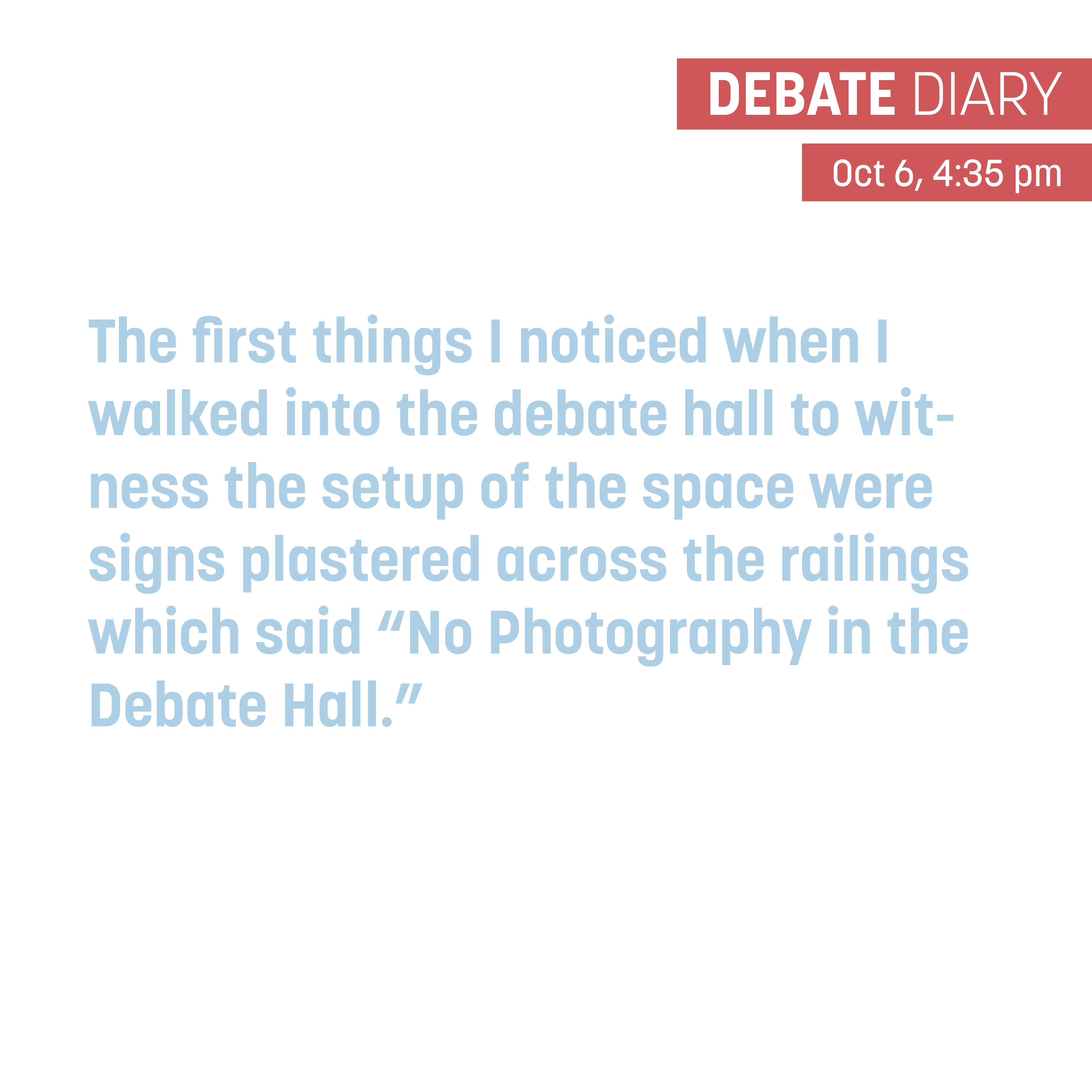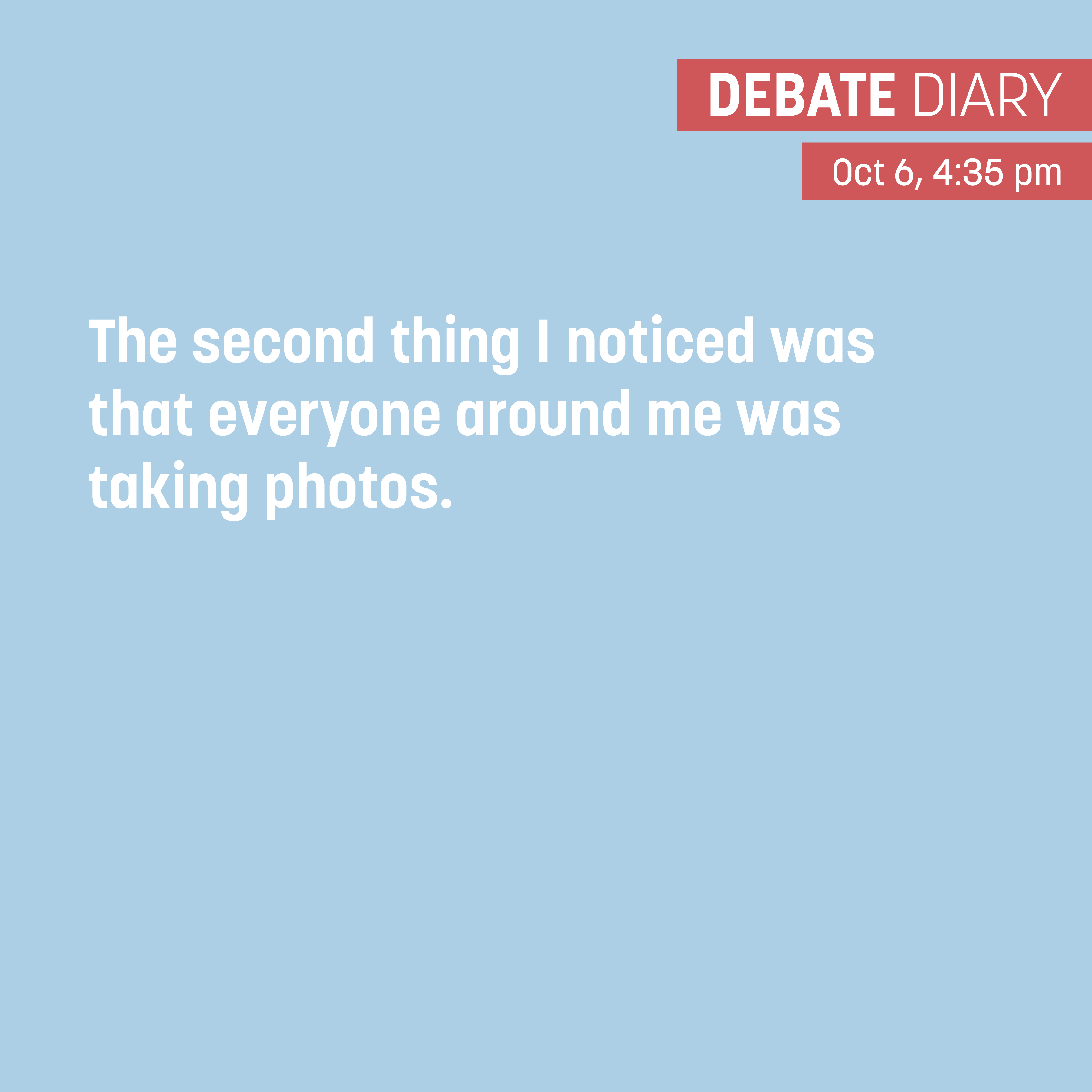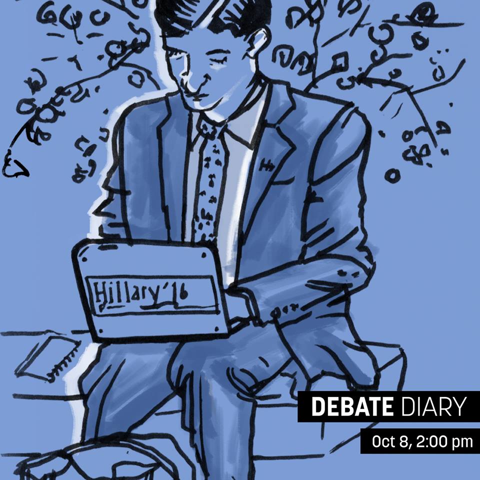 “What we found interesting were the quiet moments that media might overlook,” said Susan Lee, a senior communication design major and one of the group’s primary illustrators. “We tried to record the real people who helped to make the debate happen.”