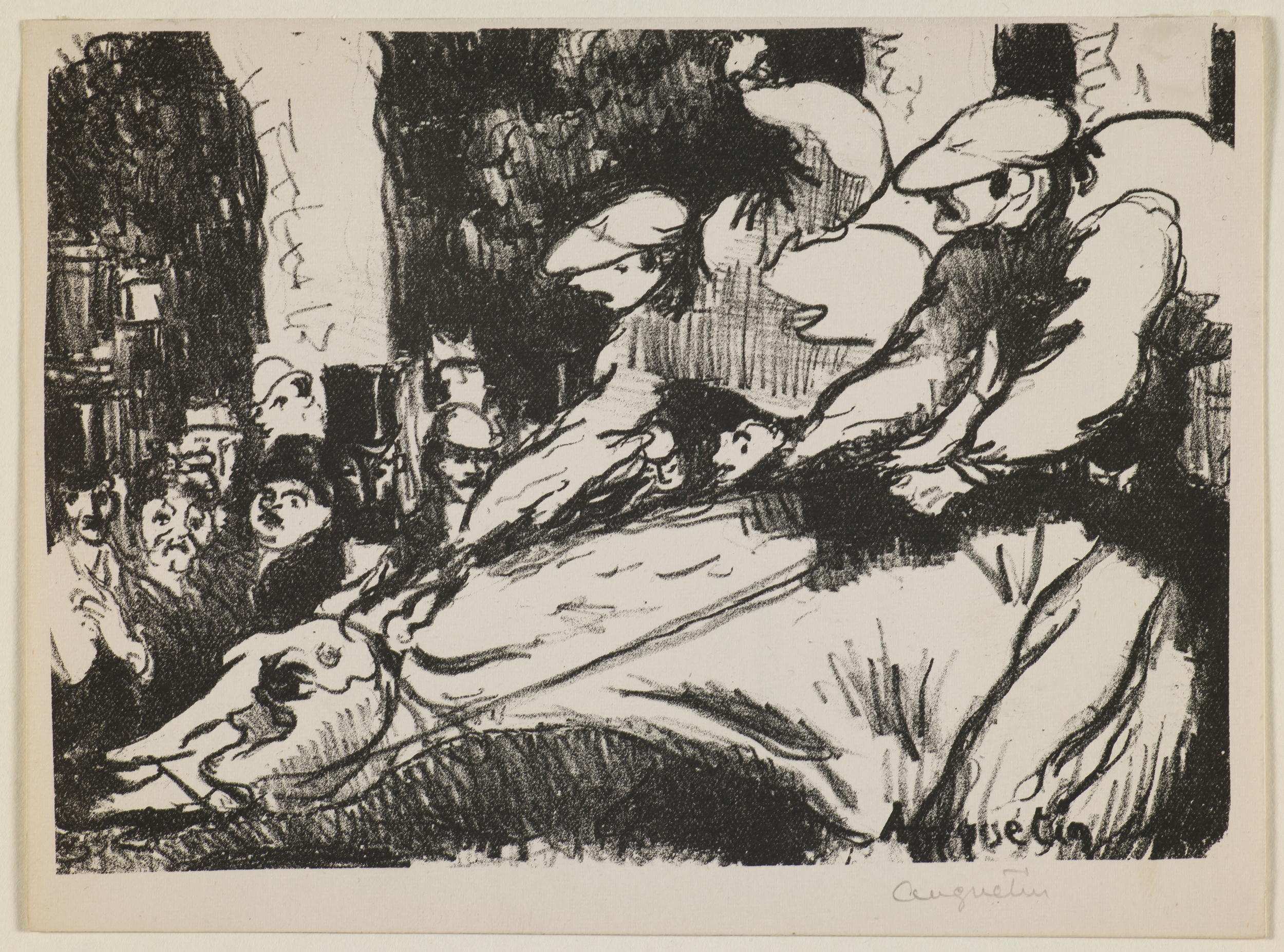 Perhaps no performer understood the power of visual advertising — or personified the era’s investments in spectacle and celebrity — better than Bernhardt, whom the exhibition also represents through film and photography. Yet other works employ a different visual strategy. Rather than focusing on individual figures, Manet’s “Les courses (The Races)” (1884), Pierre Bonnard’s “Le canotage (Boating)” (1896-97) and Edouard Vuillard’s “Une galerie d’un Théâtre du Gymnase (A Balcony at the Théâtre du Gymnase)” (1900) capture the movement and energy of the crowd — and highlight our own participation as viewers. For Parisians of all classes, the city’s true character could only be glimpsed through the pulse and speed of public life.
