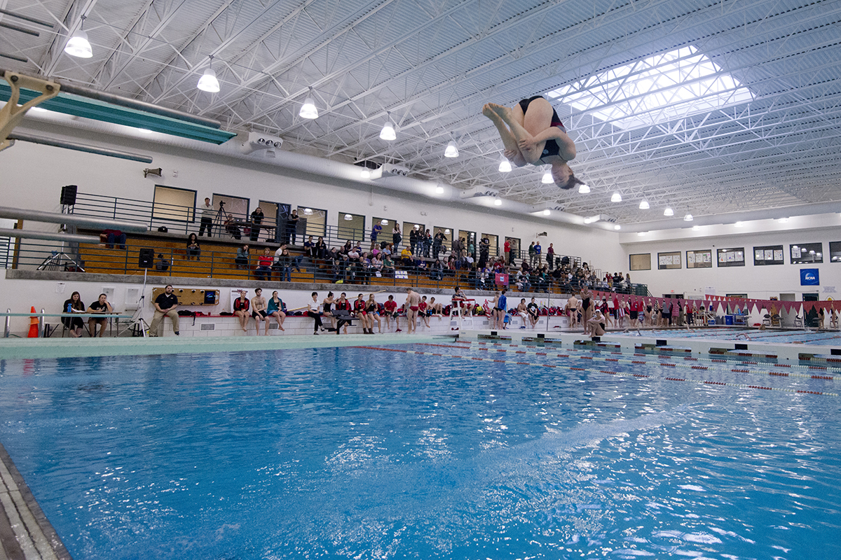 During the NCAA Swimming and Diving dual meet, the Bears swimming and diving team enjoyed multiple victories against Western Illinois University to cap the careers of 13 seniors Jan. 28 at the I.E. Millstone Pool. (Photo: Danny Reise/Washington University)