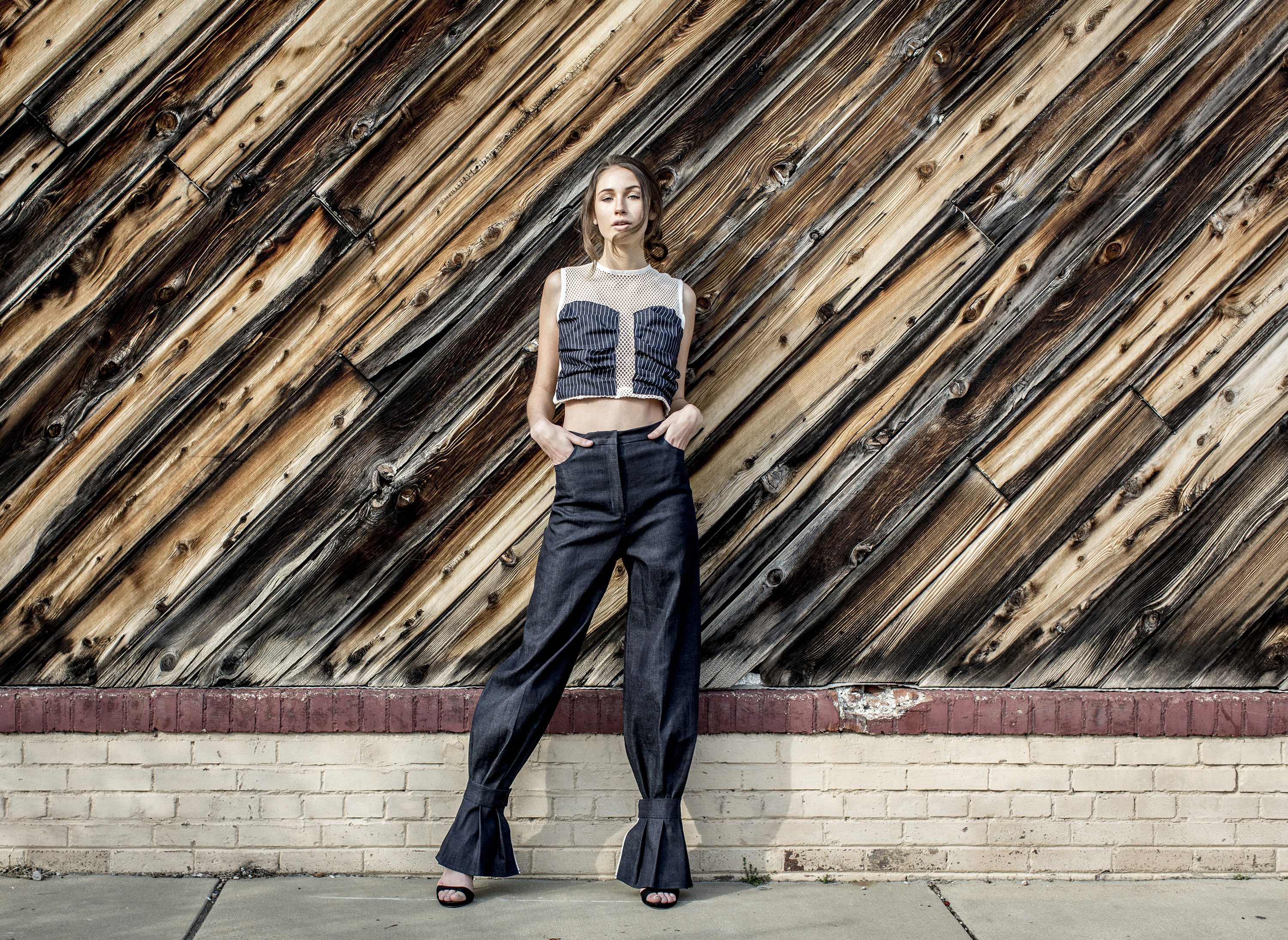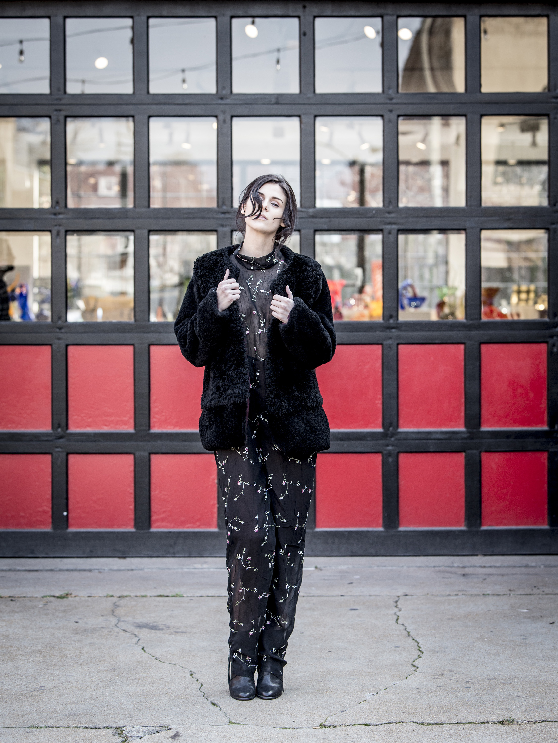 Alexis Giger’s sophisticated denim takes inspiration from Georgia O’Keeffe and “the windswept textures of the American Southwest.” Emily Rubin, inspired by experimental photography, layers sheer fabrics to create levels of transparency and opacity. Abbey Maxbauer’s “Queen of the Dog Park” coordinates cold-weather coats for humans and dogs.