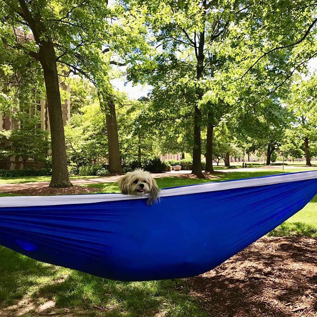 This puppy was seen taking advantage of a shady spot outside Graham Chapel recently.