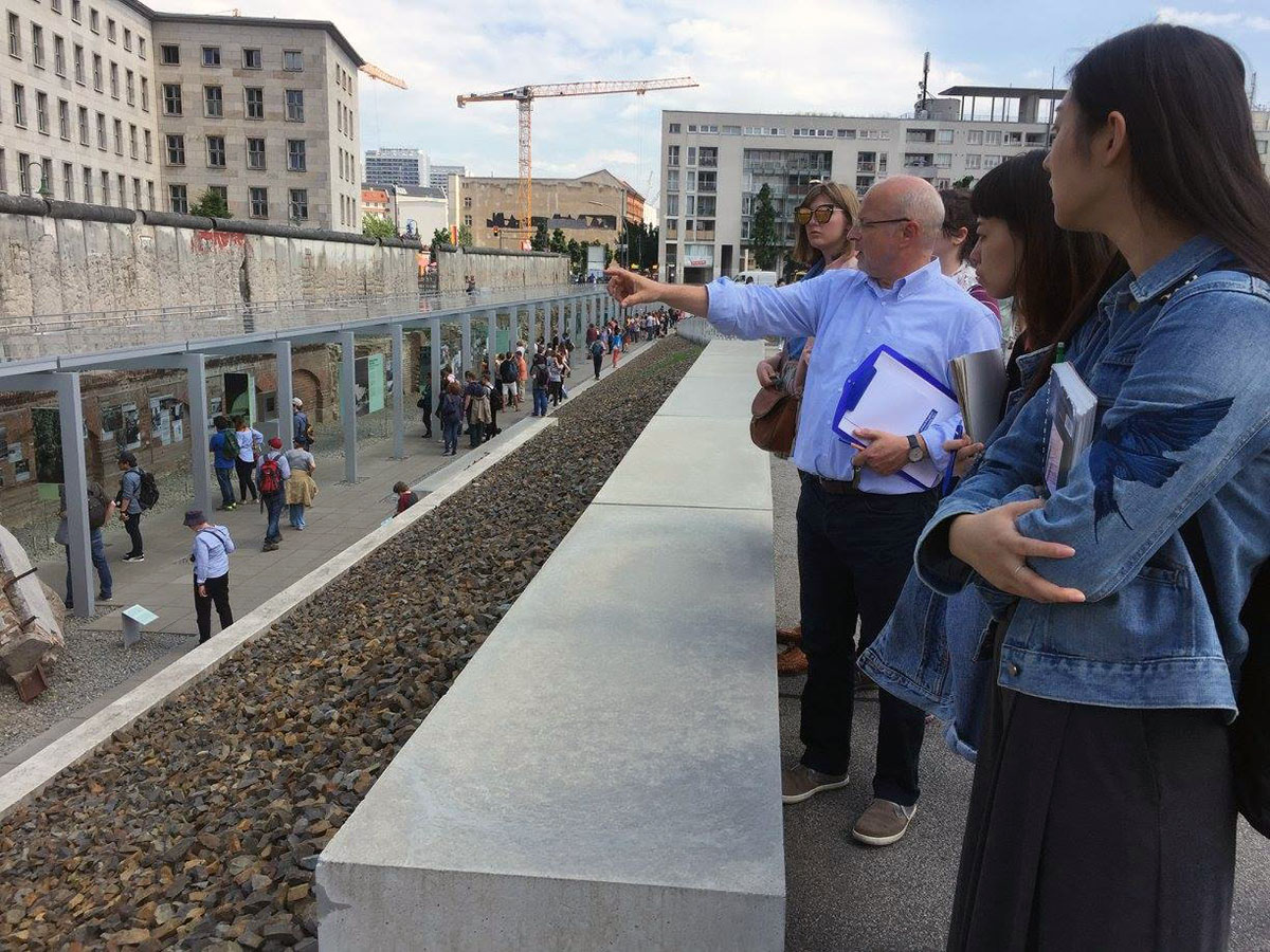 As part of Sommerakademie 2017, Sam Fox students hear from Thomas Lutz, head of the Memorial Museums Department of the Topography of Terror Foundation in Berlin. Sommerakademie explores multiple modes of creative and cultural production in relation to the material, social and political conditions of Berlin. (Photo by Patricia J. Olynyk, Sam Fox School)