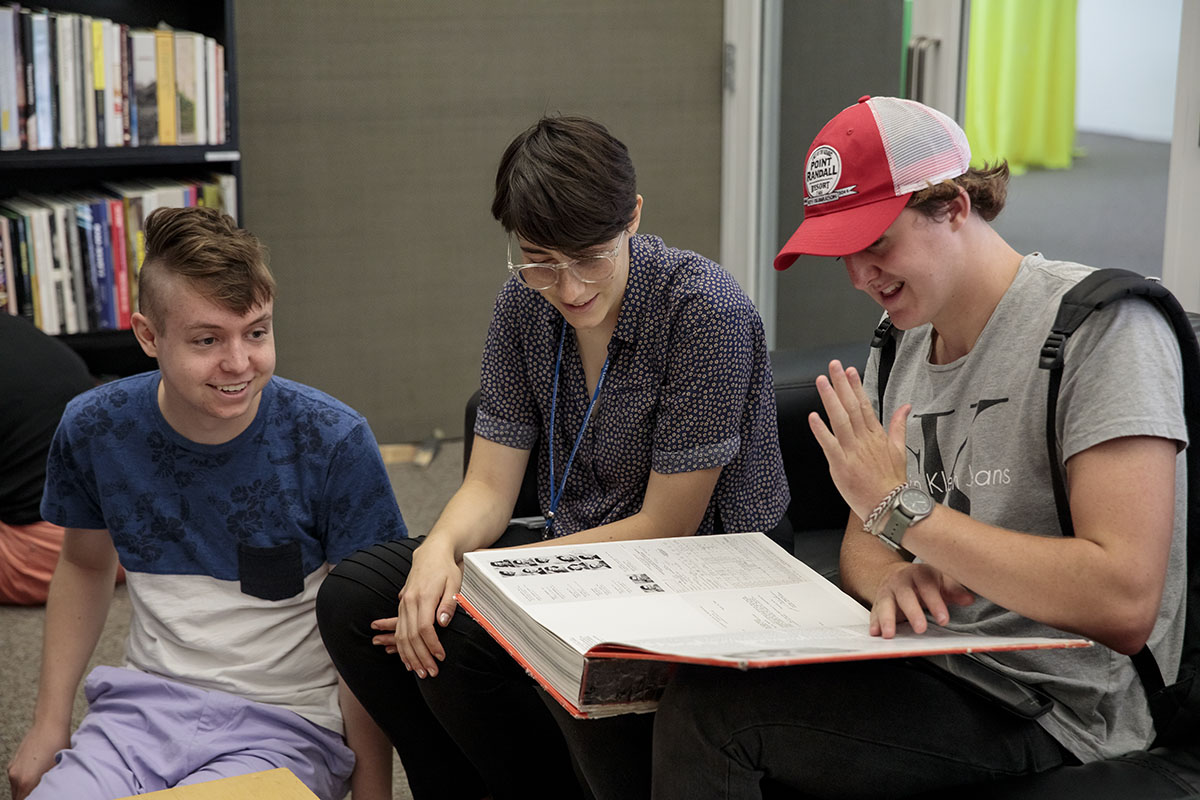 Sam Fox students and high school students perused art books together July 15 as part of the Portfolio Plus Program.