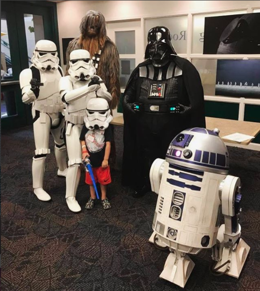 Who would’ve thought to look for the droids at St. Louis Children’s Hospital? The smallest stormtrooper was visiting his older brother in the hospital July 22. The Star Wars crew is part of St. Louis Children’s Child Life Services program, which works with patients and families to develop ways to cope with scary stuff — fear, anxiety and separation from friends and family — by using play, music, art, recreation and education techniques. (Photo: Connie Wilbur)