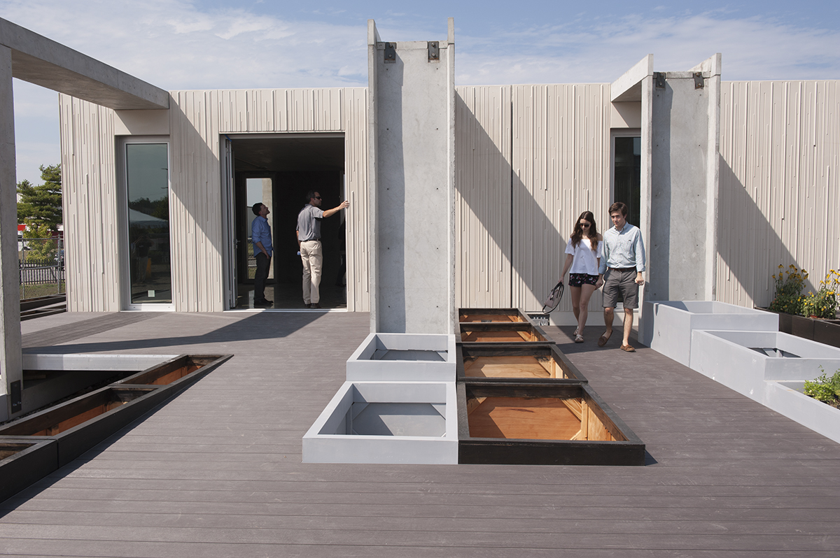 A celebration and tour of the CRETE House, a house designed and built by a collaboration of students and faculty from the Sam Fox School and the School of Engineering & Applied Science, was held Aug. 18, 2017, on the North Campus. The project will be part of the U.S. Department of Energy’s Solar Decathlon 2017 competition in October. (Photo: Sid Hastings/Washington University)