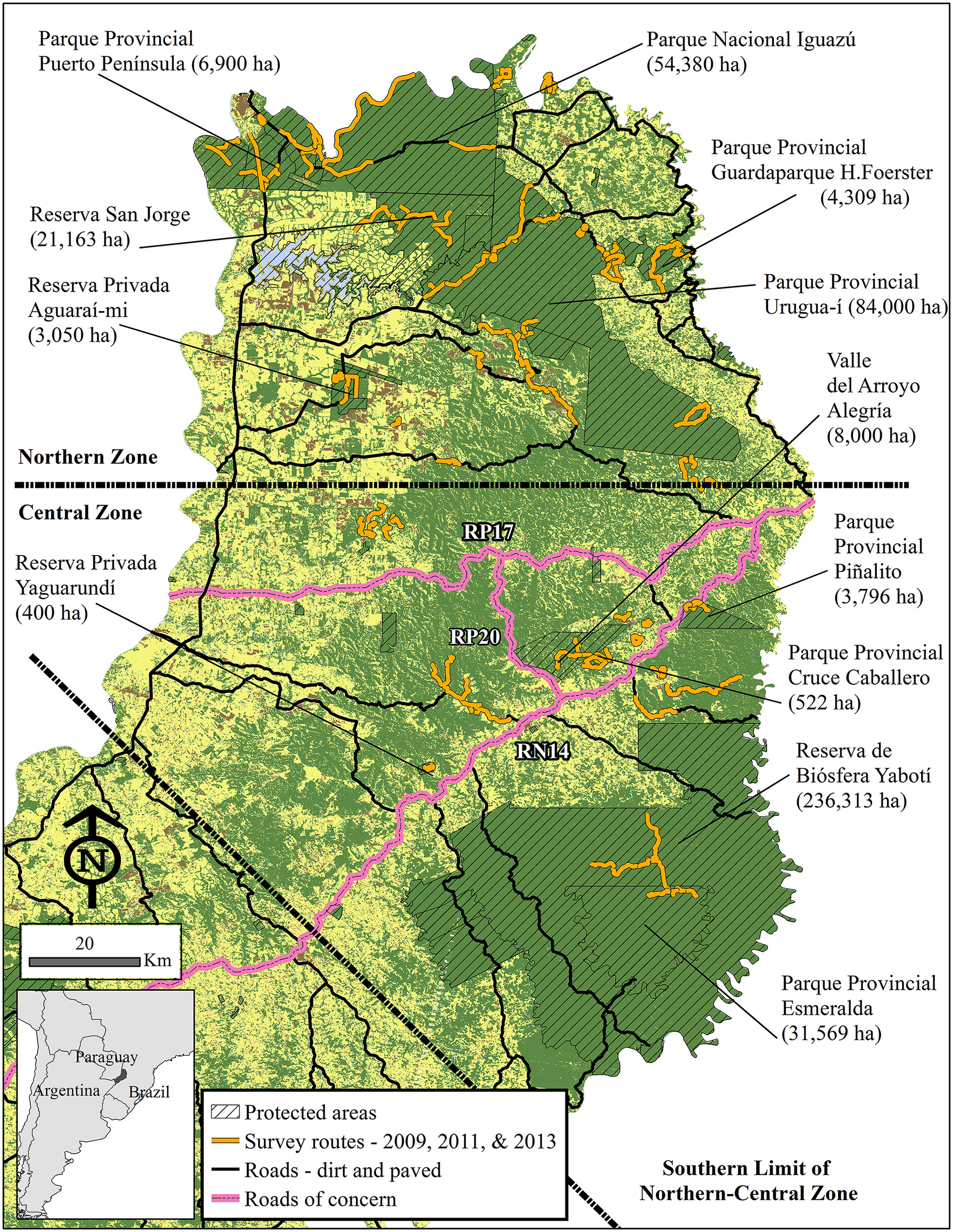 “The findings illustrate the benefit of using multiple species versus a single species to develop corridors, because using only the highly restricted jaguar to develop the corridor would mean that the potential distributions of the other four carnivores would be restricted and decreased by as much as 30 percent,” DeMatteo said. “So, it appears that, at least in the Misiones province, the jaguar should not be modeled as an umbrella species because the results fail to capture the varied requirements of coexisting species across the breadth of potential habitats.”
