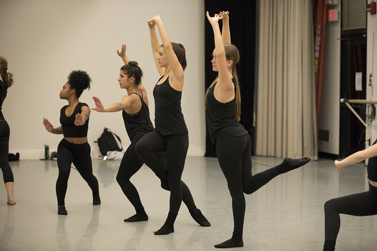 Visiting dancer Ting-Ting Chang works with dance students in the Performing Arts Department in Arts & Sciences Oct. 10. Chang was on campus to lead master classes and set a new work, which will be performed in Edison Theatre Dec. 1-3 as part of “Here.Now.Together.,” the annual Washington University Dance Theatre concert. (Photo: Whitney Curtis/Washington University)