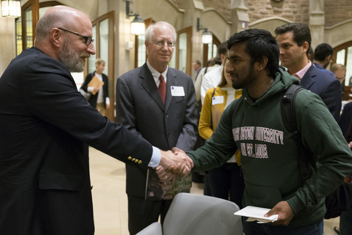 The Olin Business School co-hosted the WFA-CFAR and JFI Conference held Oct. 6 in Bauer Hall. The conference topic was the “Post-Crisis Evolution of Bank and Financial Markets.” (Photo: Whitney Curtis/Washington University)