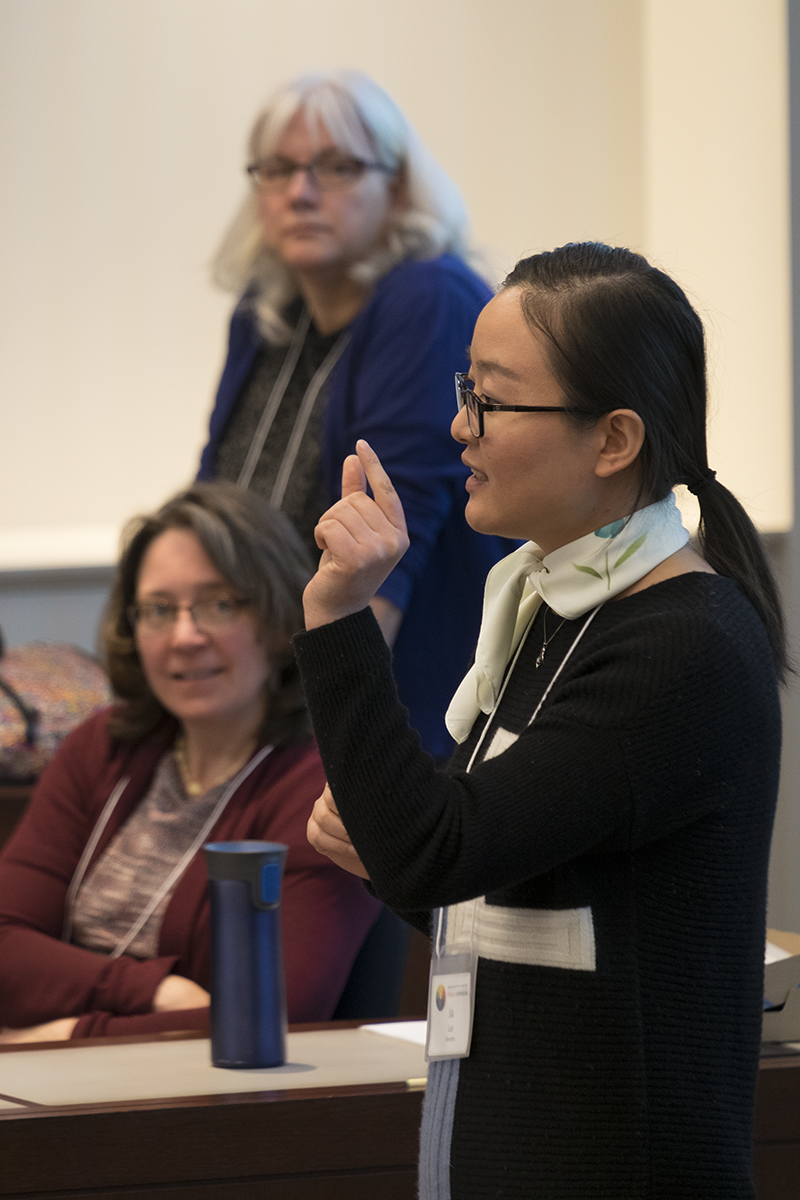 Jia Luo, lecturer in chemistry in Arts & Sciences, delivers remarks during the iTeach session on “The Inclusive Syllabus Project.” Learn more on the Teaching Center site.