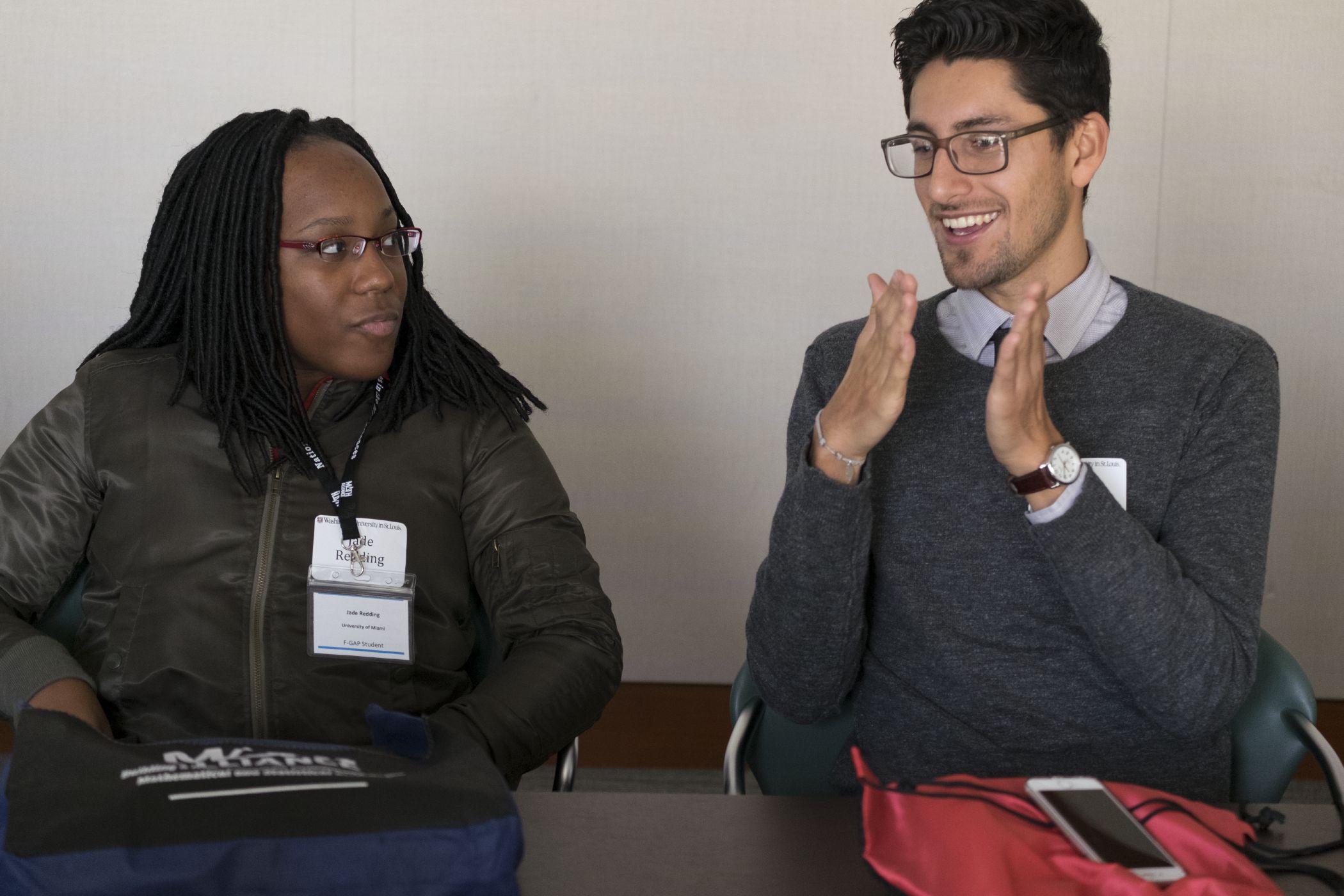 Top math students from across the nation attended the Field of Dreams Conference hosted by Washington University late last year. Here, participants Jane Redding and Rafael Ceja learn more about graduate education in mathematics and related fields at Washington University. Read more about a past conference in The Source.