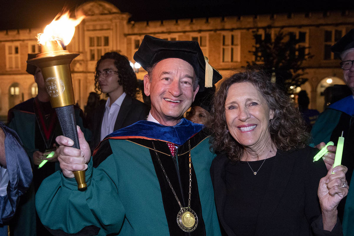 Wrighton launched Convocation 21 years ago and charged Givens and Karen Coburn, formerly assistant vice chancellor for students and currently senior consultant in residency, with creating an event that would create a community of friends and scholars. Every element — the students’ residential college cheers, faculty’s academic regalia, the parents’ glow sticks that light the way from the ceremony to the Quadrangle — reinforce the values and spirit of Washington University.