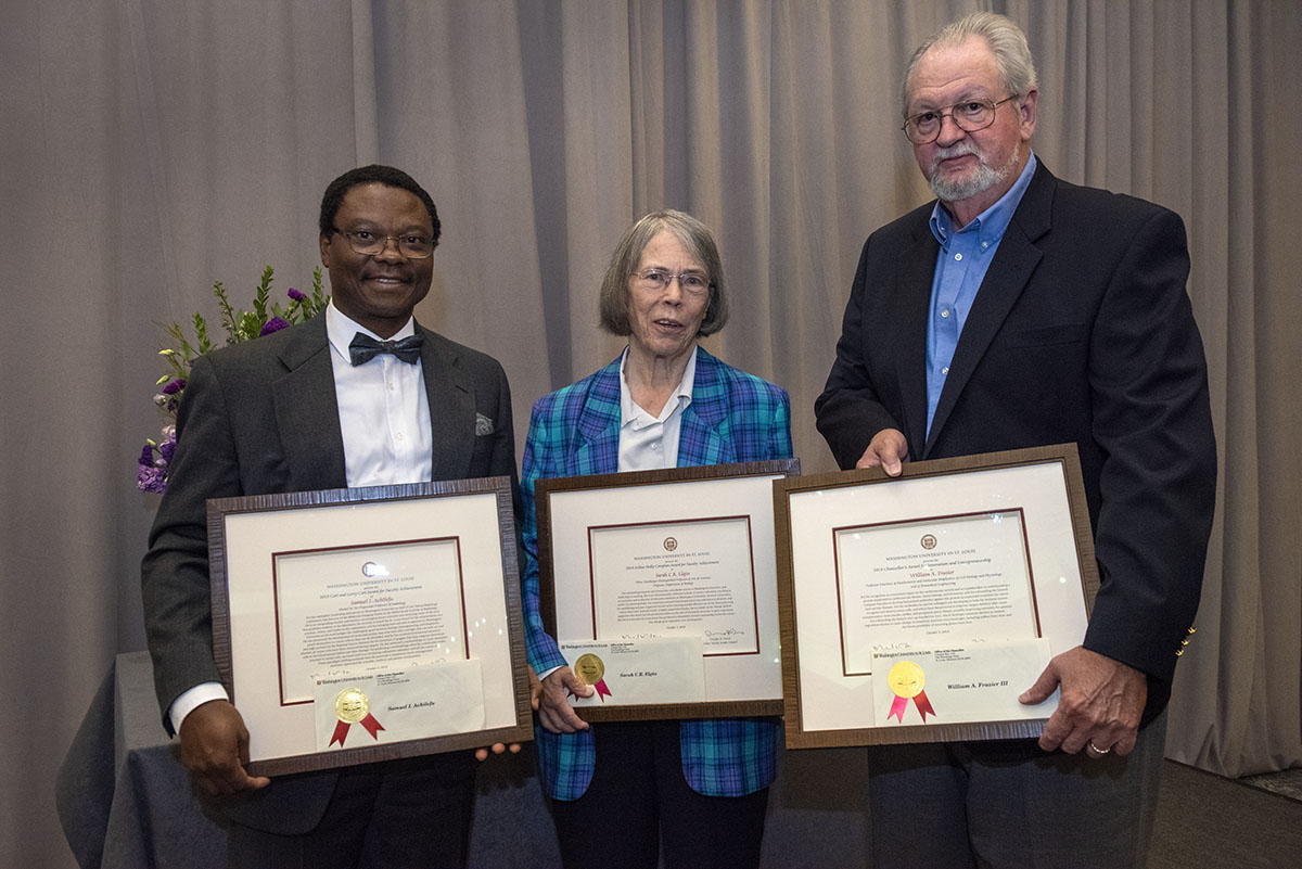 The 2018 Faculty Achievement Awards celebration was held Oct. 5 at the Ritz-Carlton in Clayton, Mo. The honorees were Samuel I. Achilefu, of the School of Medicine, and Sarah C.R. Elgin, of Arts & Sciences. William A. Frazier III (right), of the School of Medicine, also was recognized for innovation and entrepreneurship. Read more about them in The Source. (Photo: Sid Hastings/Washington University)